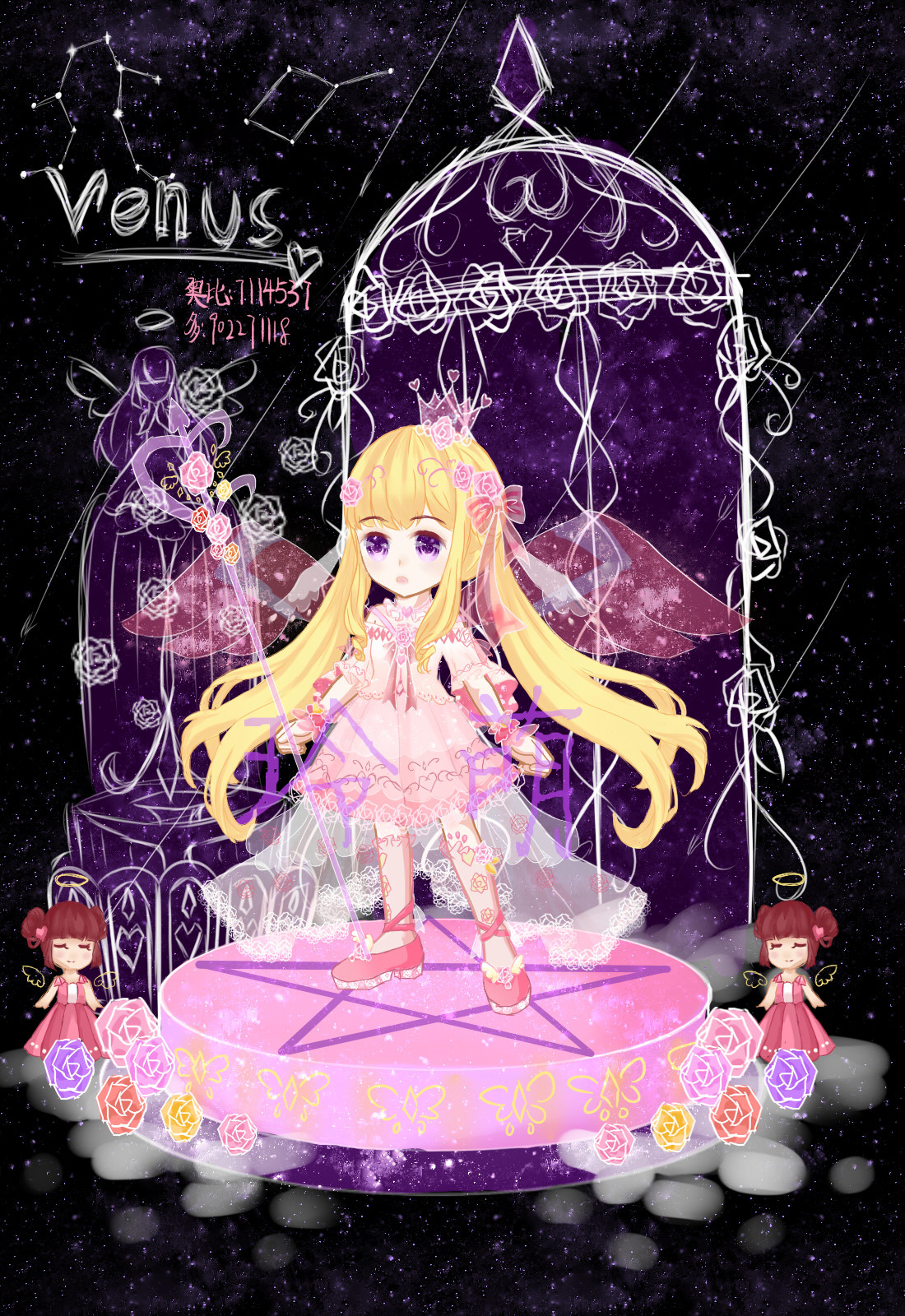 玲萌奥比岛板绘作品--玫心天使装