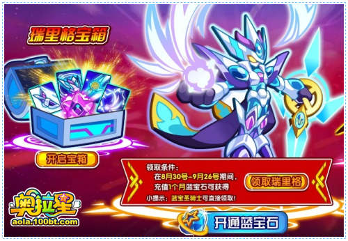 想要得到它吗?在8月30号—9月26号期间,充值1个月蓝宝石就可以获得瑞里格啦!!
