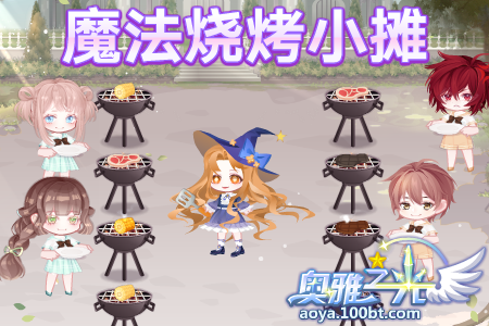 校园庆典开始啦!斐伊在校园里摆起了烧烤摊,用魔法为大家烤制美味的食物!