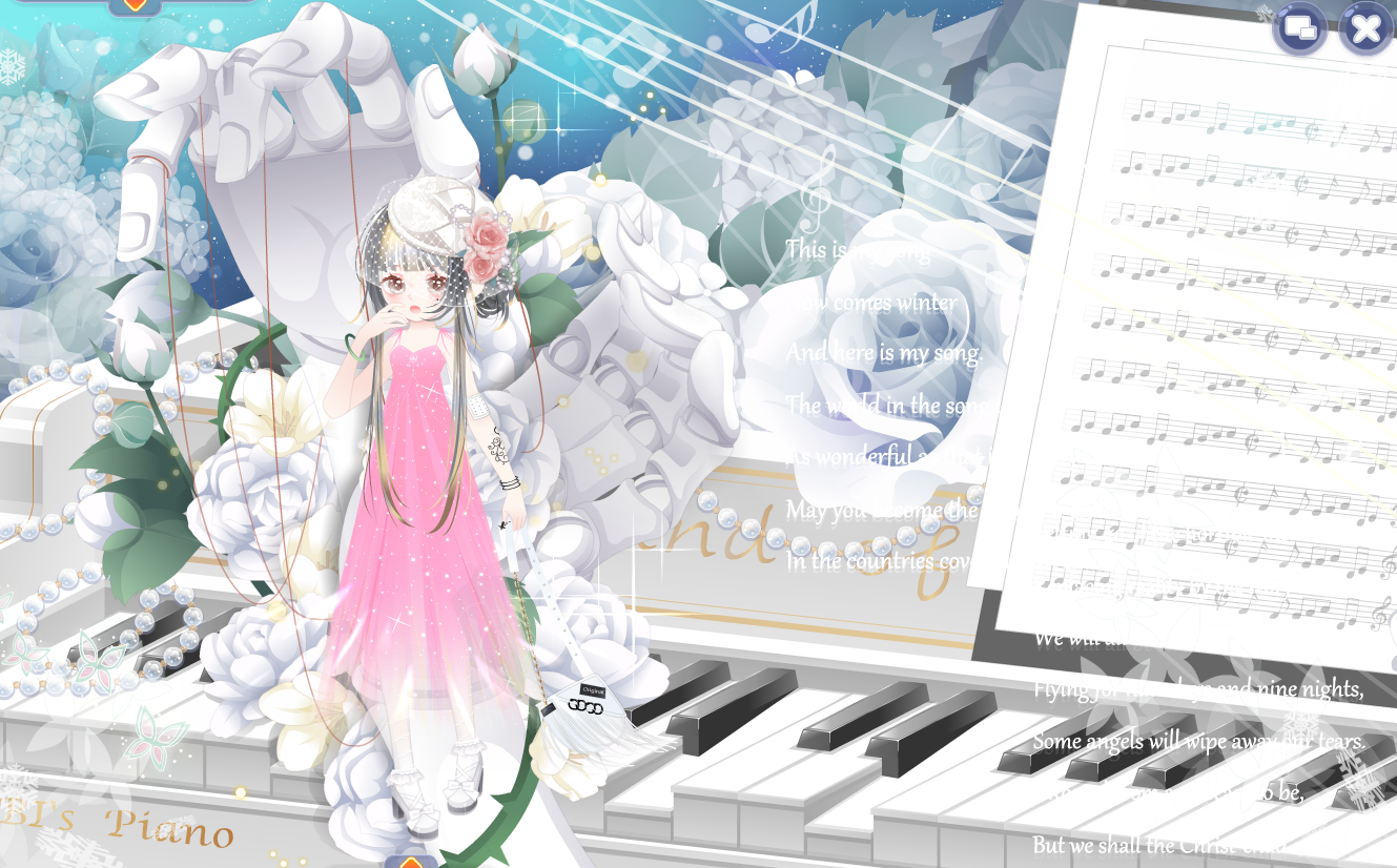 搭配部件:伦敦街头裙子,伦敦街头帽子,文艺校园外套,金色年华盘发,宫廷少女站姿,鬼娃木偶操纵,时光精灵微笑妆,猫猫礼遇背景,雪之歌框架。
