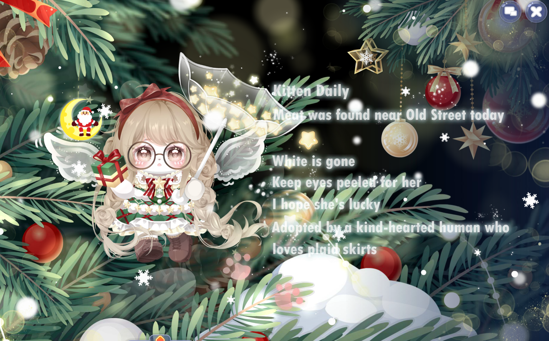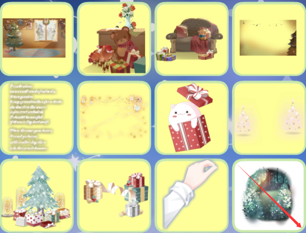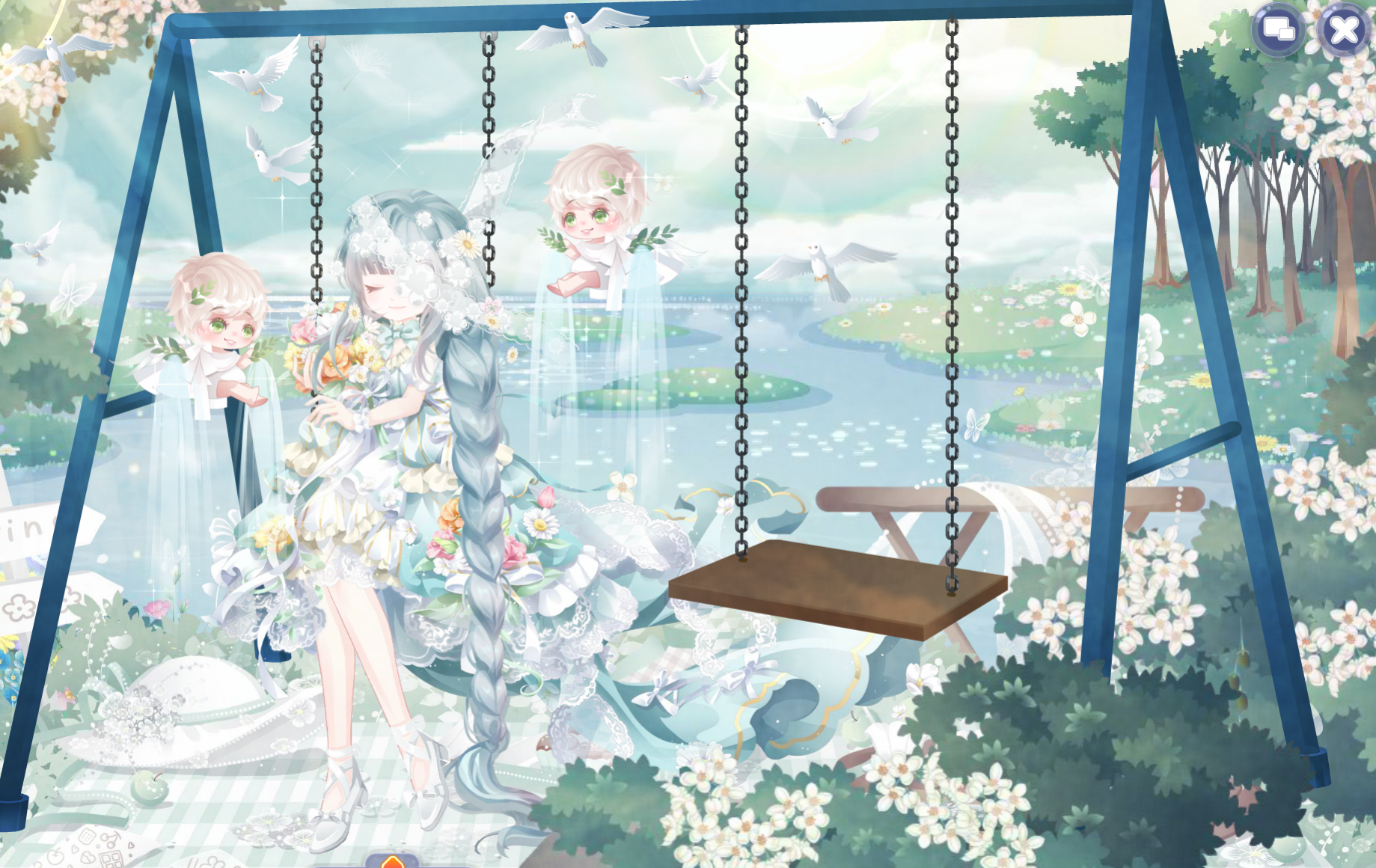 搭配部件:四季诗/猫猫礼遇表情/森野咩咩头饰/春日邮馨发/三月描画颜料盒/三月描画拿颜料/三月描画绘制/静待春光光效/三月描画前画架/暗香玻璃花房/荆棘鸟草地/斯丁格花园铁门/斯丁格花园草地/云暖花谱奏曲诗/春季森林屋