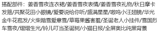 搭配部件:珍语假日裙子/珍语假日披肩/珍语假日手持/春日出行公主裙/奥比粉意校园鞋/盘蛇之魇/哥特学院蕾丝帽/灼灼晶莹/辣妹甜酷笑颜/出街琴琴圆皮带/花花甜茶眼镜/香颂假日背饰/狂欢晚宴桌子/待君归字幕/绒馨流珠地毯