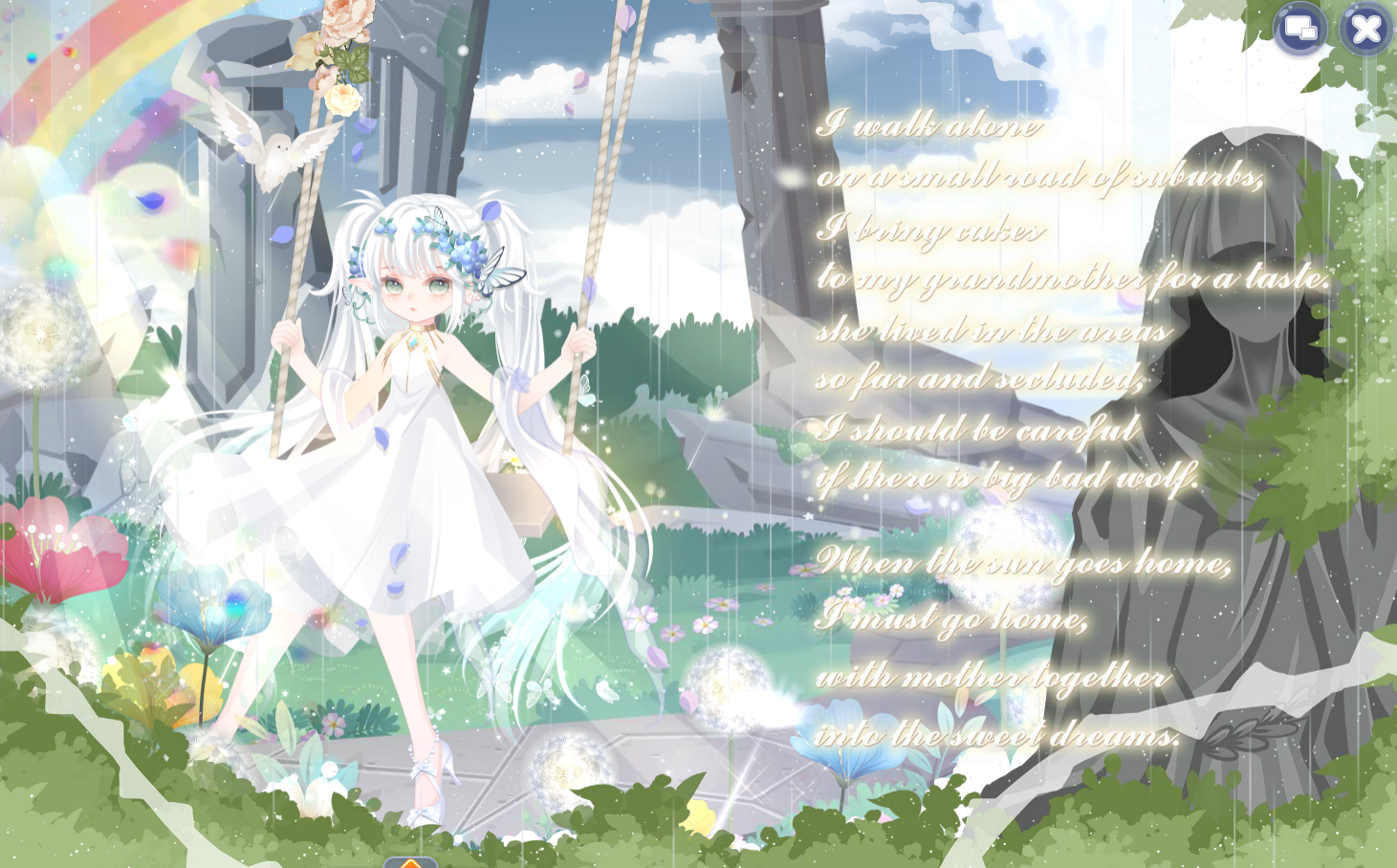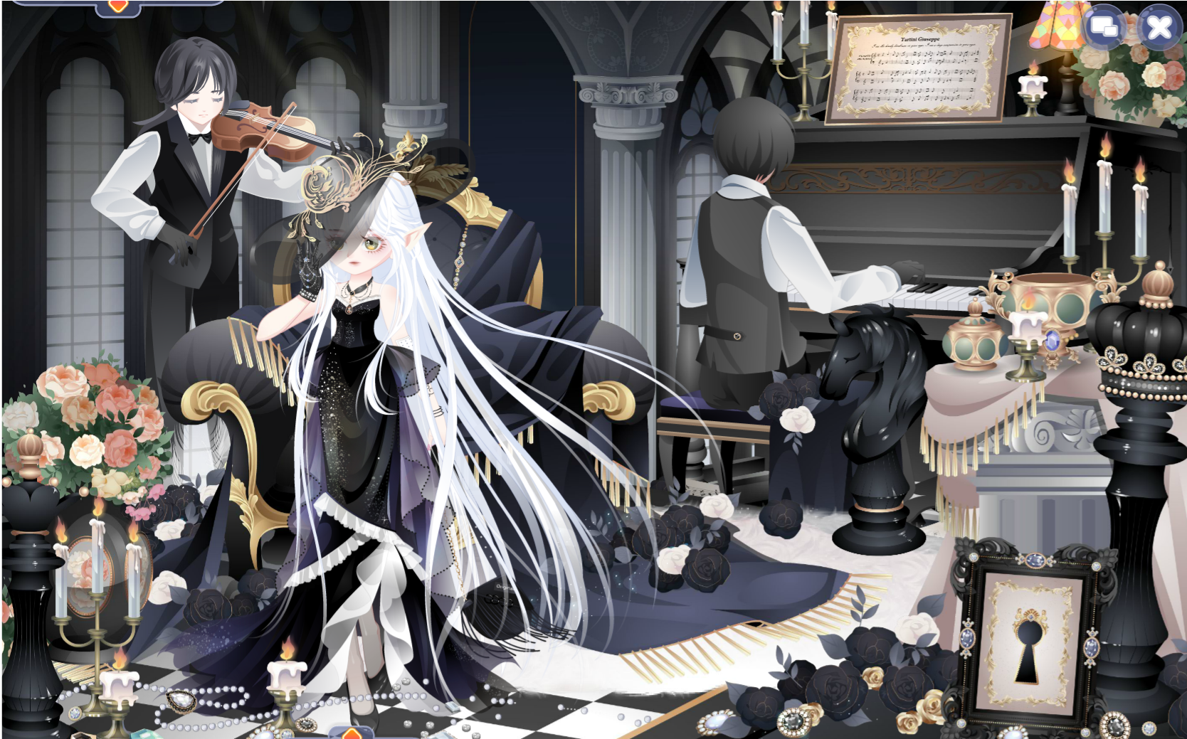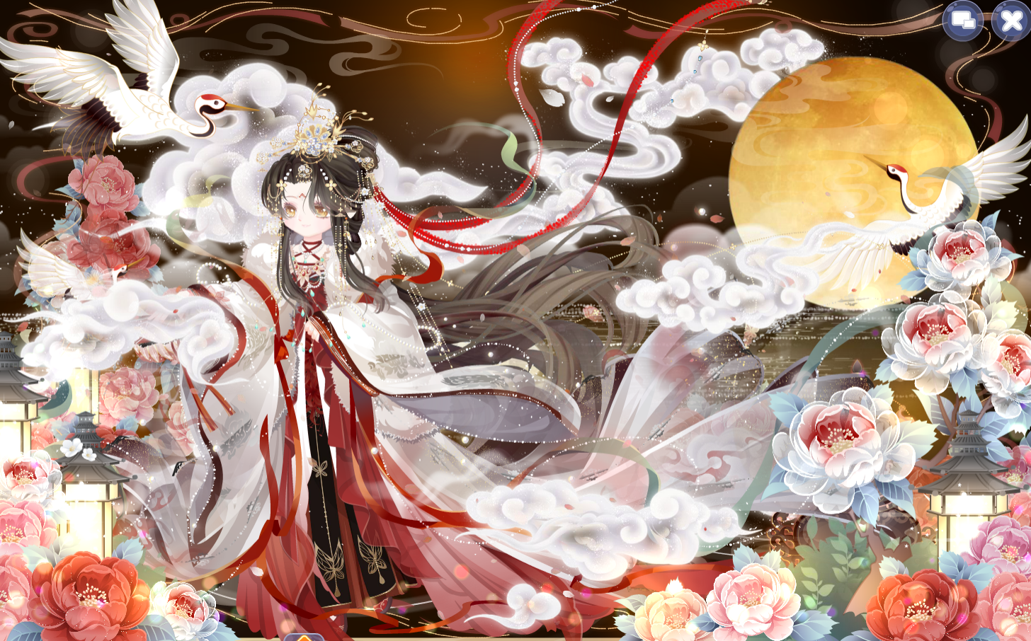 搭配部件:月霄花雨飘带、月霄花雨花钿、月霄花雨发型、寻觅文明垂眸、耀舞盛世头饰、御·不知春、赤灯清影裙子、霓裳金莲项链、武宣歌舞下裙、月霄花雨坠梦、耀舞盛世牡丹、玉兔抱桂月映水、龙纹香炉绣、璀璨朋克璀璨背景