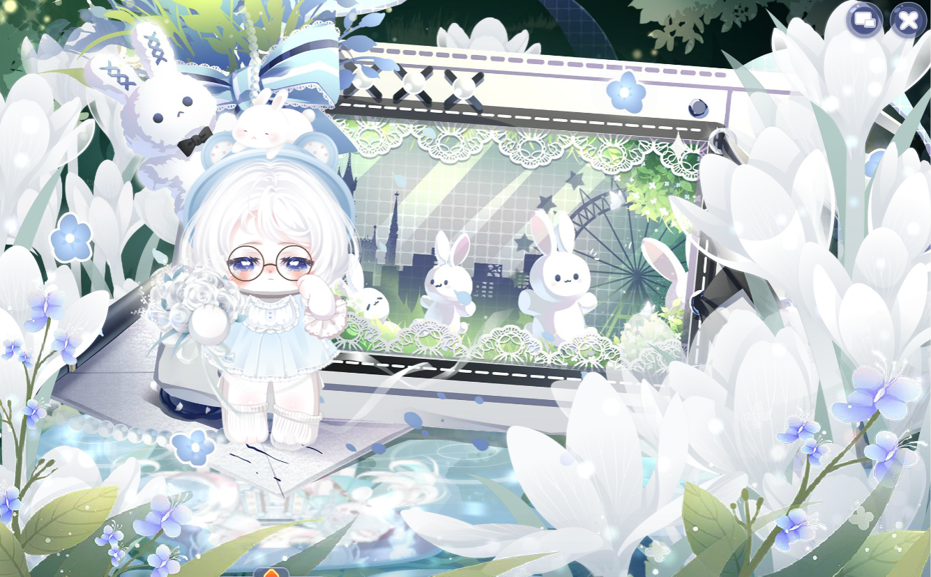 搭配部件:雪芽破寒裙、熊熊心事托腮、守护星愿站姿、守护星愿羽翼、守护星愿裙纱、守护星愿头饰、星幻光环头饰、神圣咏叹异瞳、神圣流转之纱、游轮贵女长发、夏·熠熠生光、时之童谣灯泡、时之童谣圆灯、巡游国王泡泡、雪夜际遇雪纷纷、沥沥雨声水渍、时光精灵沙漠、时光精灵花路、时光沙漏、时光精灵背景、时光白番红花、时光精灵小伙伴