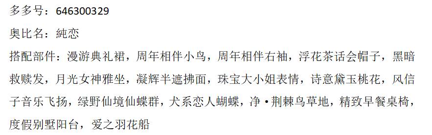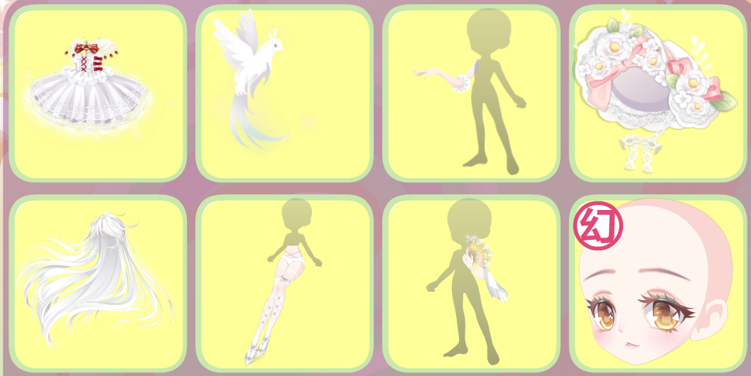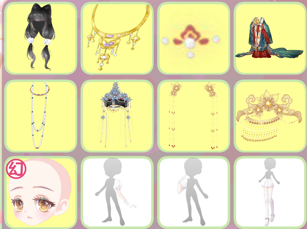 搭配部件:甜雪猫耳发,月霄花雨项圈,月霄花雨花钿,鸾鸟·未央,万凰皇后朝珠,万凰皇后朝冠,华夏新娘金簪,鸾凤和鸣金簪,珠宝大小姐表情,挽风洒满星辰,H.X繁花市井,乌鹭·纱帘幽梦,耀舞盛世花灯,霓裳金莲宫灯,霓裳金莲祥云,神佑·桃结缘来,貂蝉·映水绛唇花,江山美人长廊