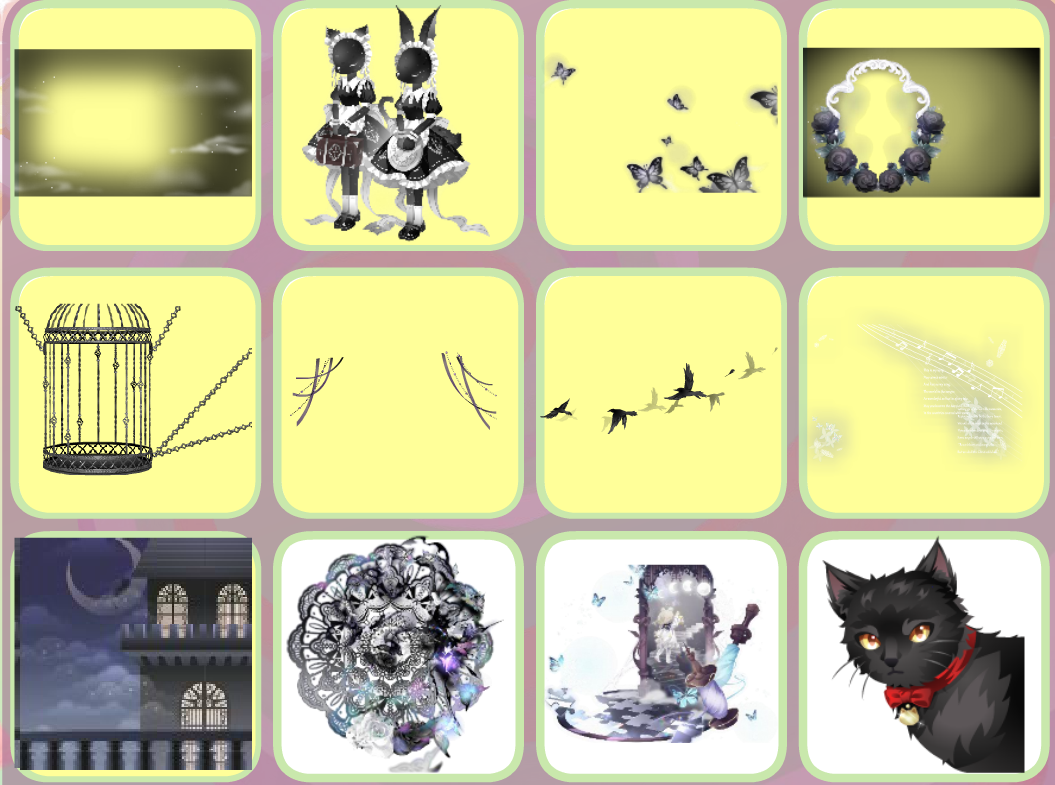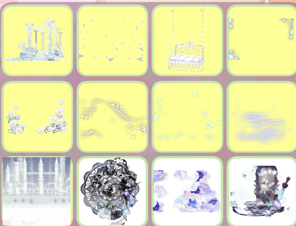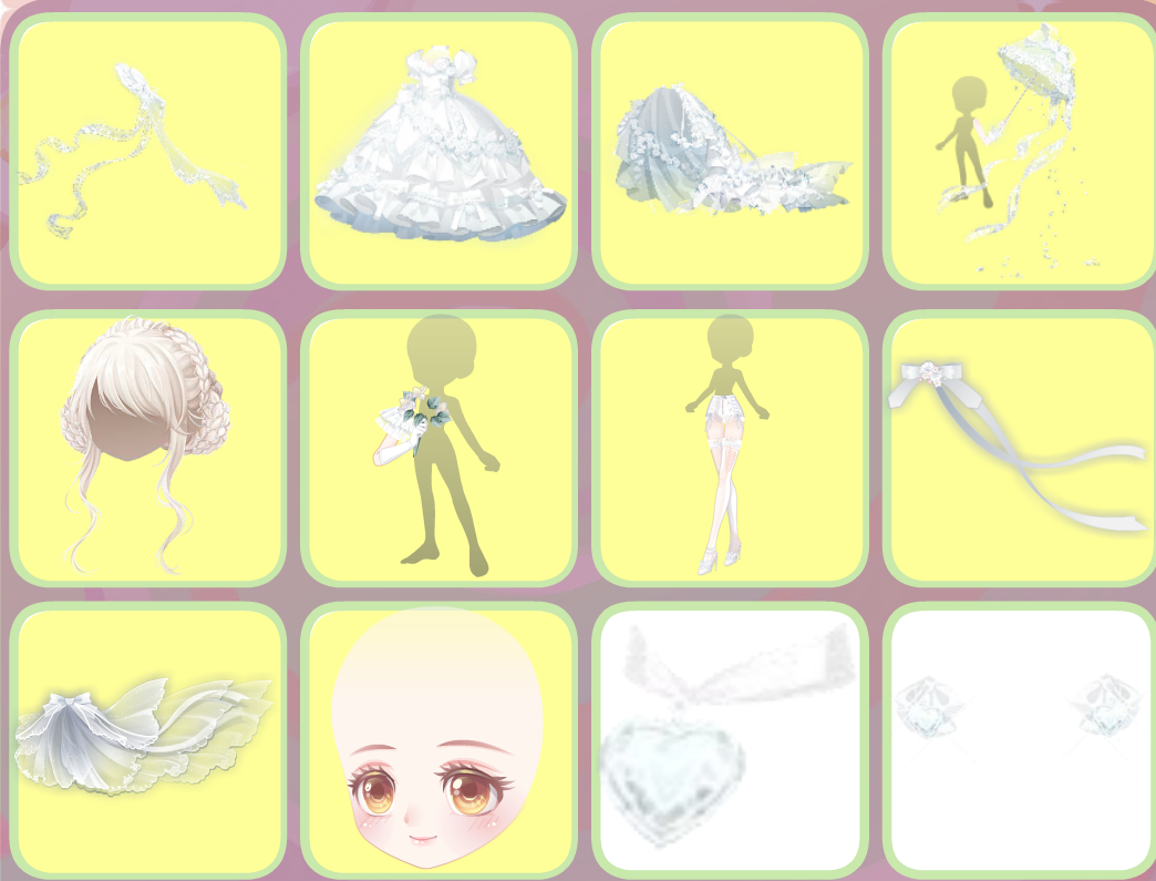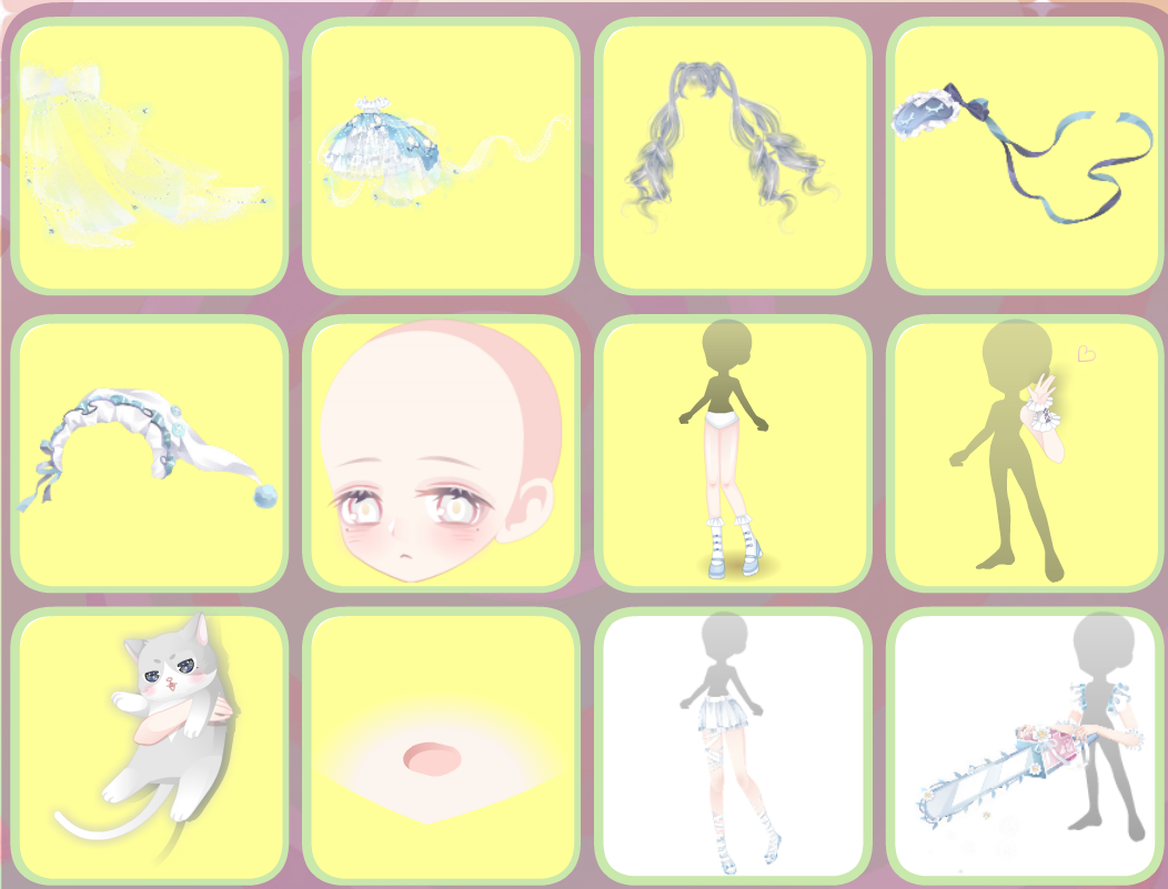 搭配部件:雾屿序风纱裙、雾屿序风连衣裙、迷城绮夜卷发辫、睡魔无梦之梦、睡魔谎言迷因、陌·留白、小灶娘鞋子、比心斑斓左袖套、咖啡萌宠抱猫袖、噩梦终端惊讶嘴、雾屿序风背饰、咪的小花园、雨黯蛛纱精灵、雨黯蛛纱清新、雨黯蛛纱梦幻、狼少女诗句、小奥比坠海背景、表白爱意风车灯、表白爱意花瓣烛、爱意表白星吊灯、爱意表白透纱帘、爱之羽边框、星河套房内室、天国之王前花丛