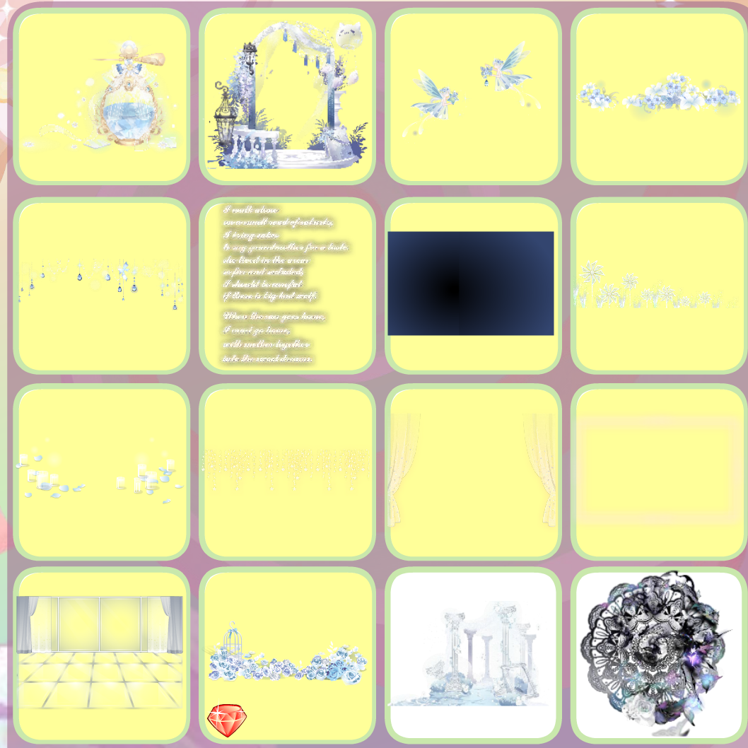 搭配部件:花·悦、光之美少女站姿、光之美少女裙纱、光之美少女短裙、光之美少女颈饰、光之美少女头饰、乐·明日之星、乐·圣音法杖、净梦舞彩蝶双辫、时光精灵微笑妆、花·廊、光之美少女光效、契约牢笼白鸽、魔法夏铃光效、出道夜蝴蝶蹁跹、乐·契约魔法、乐·小熊指挥、未来歌姬舞台、精灵呢喃背景