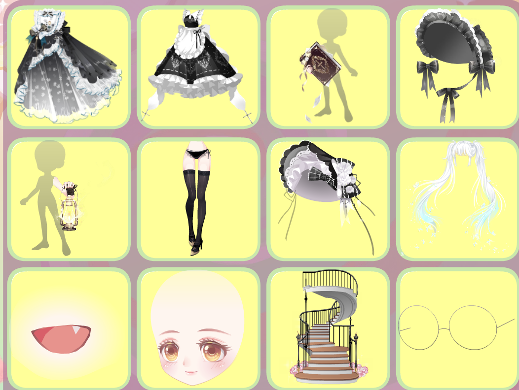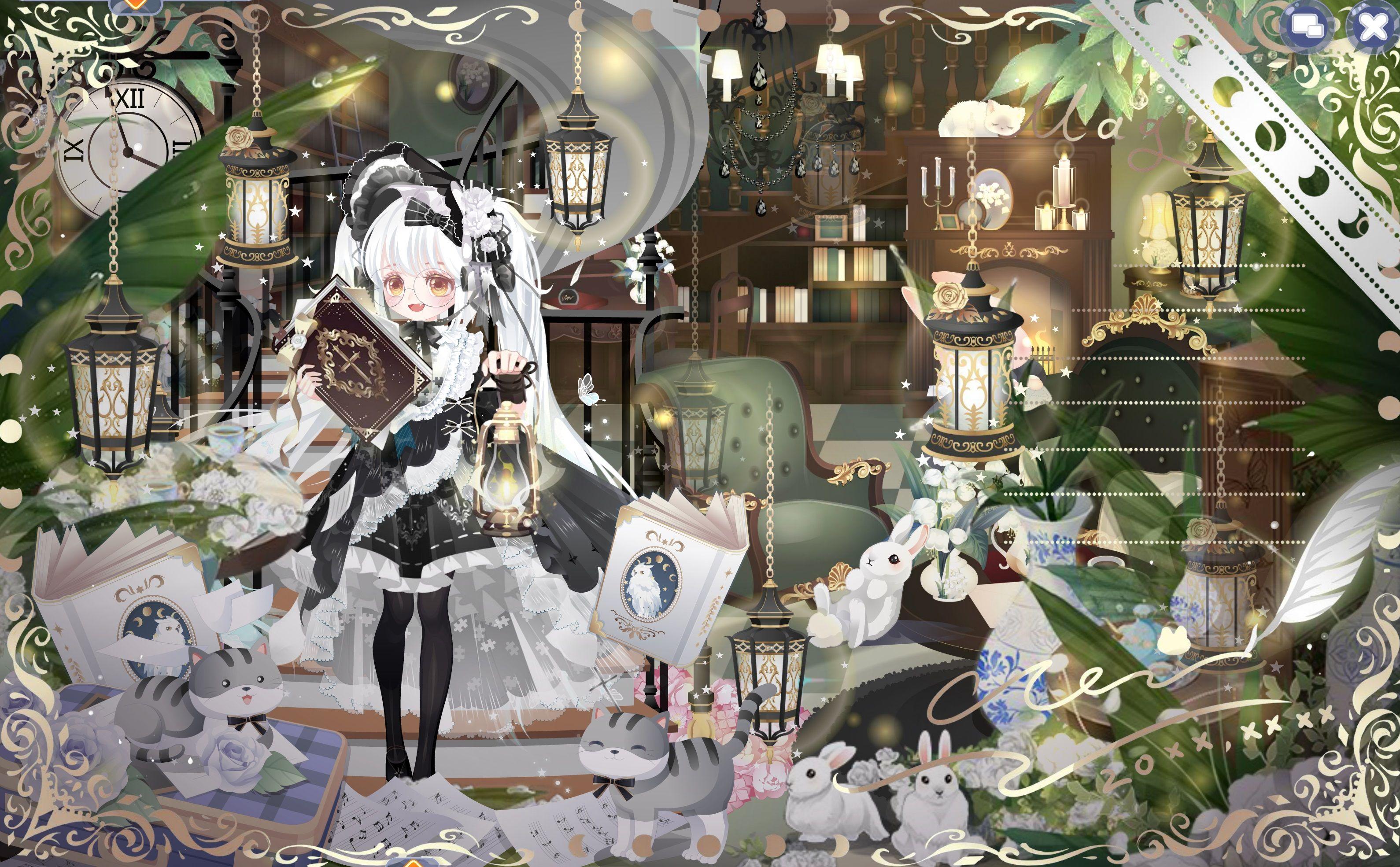 搭配部件:迷城绮夜外裙、夜·侍从、夜·魔法、净世宫廷小黑帽、记忆·寻、极限特工站姿、永夜奏鸣蕾丝帽、净·梦舞彩蝶双辫、生之礼赞开心笑、时光精灵微笑妆、舞会旋转楼梯、魔法黑熊眼镜、留声萦年光效、洛语芙蕾藏书室、洛语芙蕾沙发、夜·序章、猫头鹰学院书籍、时间旅行小伴宠、暗香·杨雨晴景、月球皇族走马灯、誓约新娘挂饰、音乐课代乐谱、春暖花开时钟