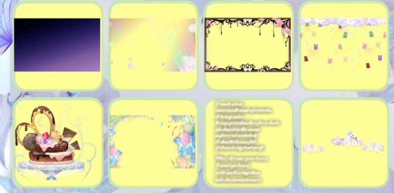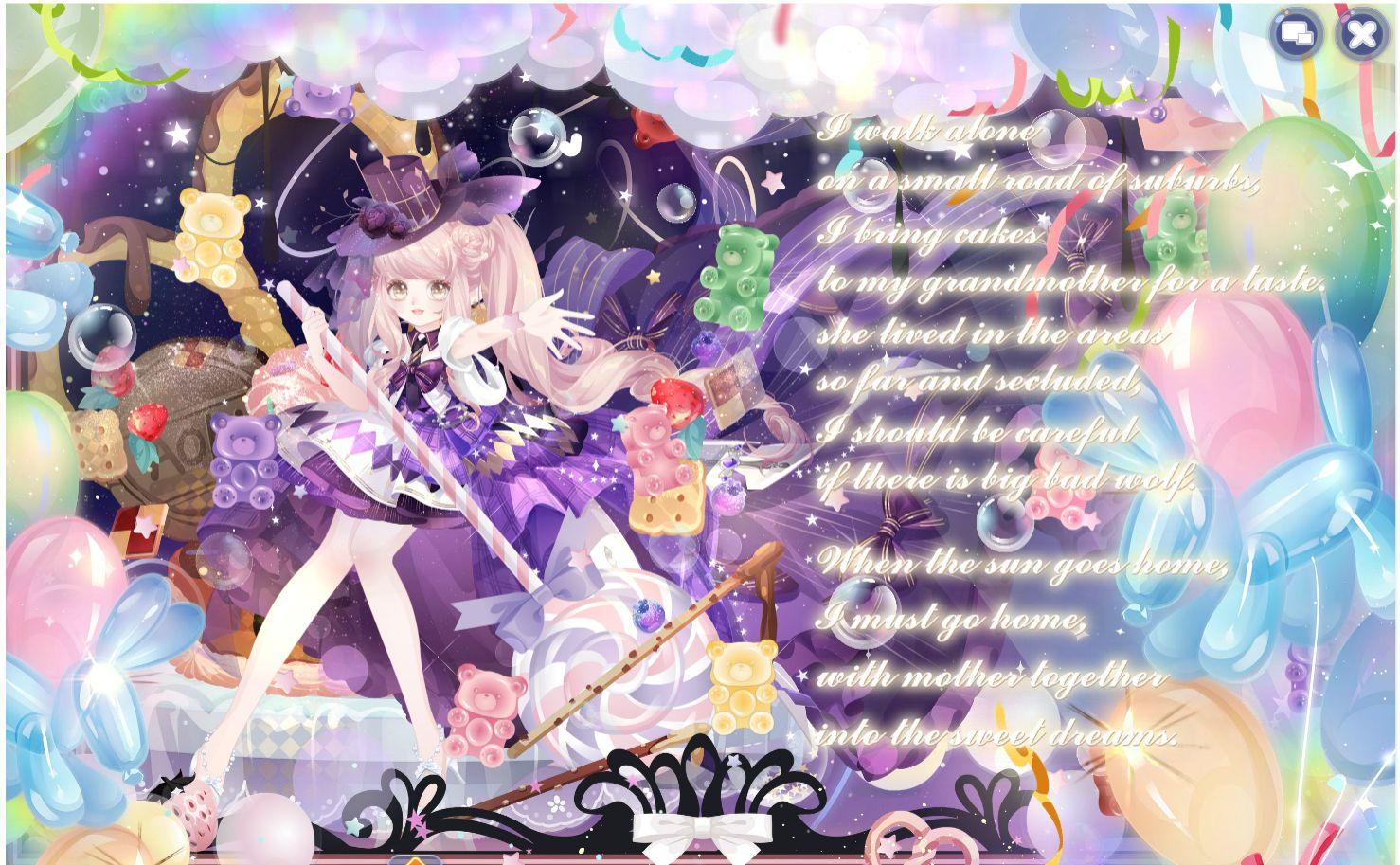 搭配部见:青春默默陪伴你,青春幻梦聆听语,幻时引路,甜度趣糖波板糖,狮倾女王鞋子,静待春光妆,棉花糖,教皇大人耳饰,青春无限可能性,青春闪耀自身点,巴洛克框框,夜西糖果雨背景,巧克力蛋糕,室女•庆典,狼少女诗句,克拉拉幻想礼物