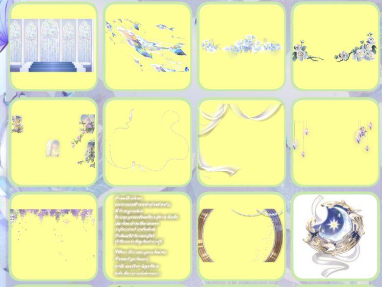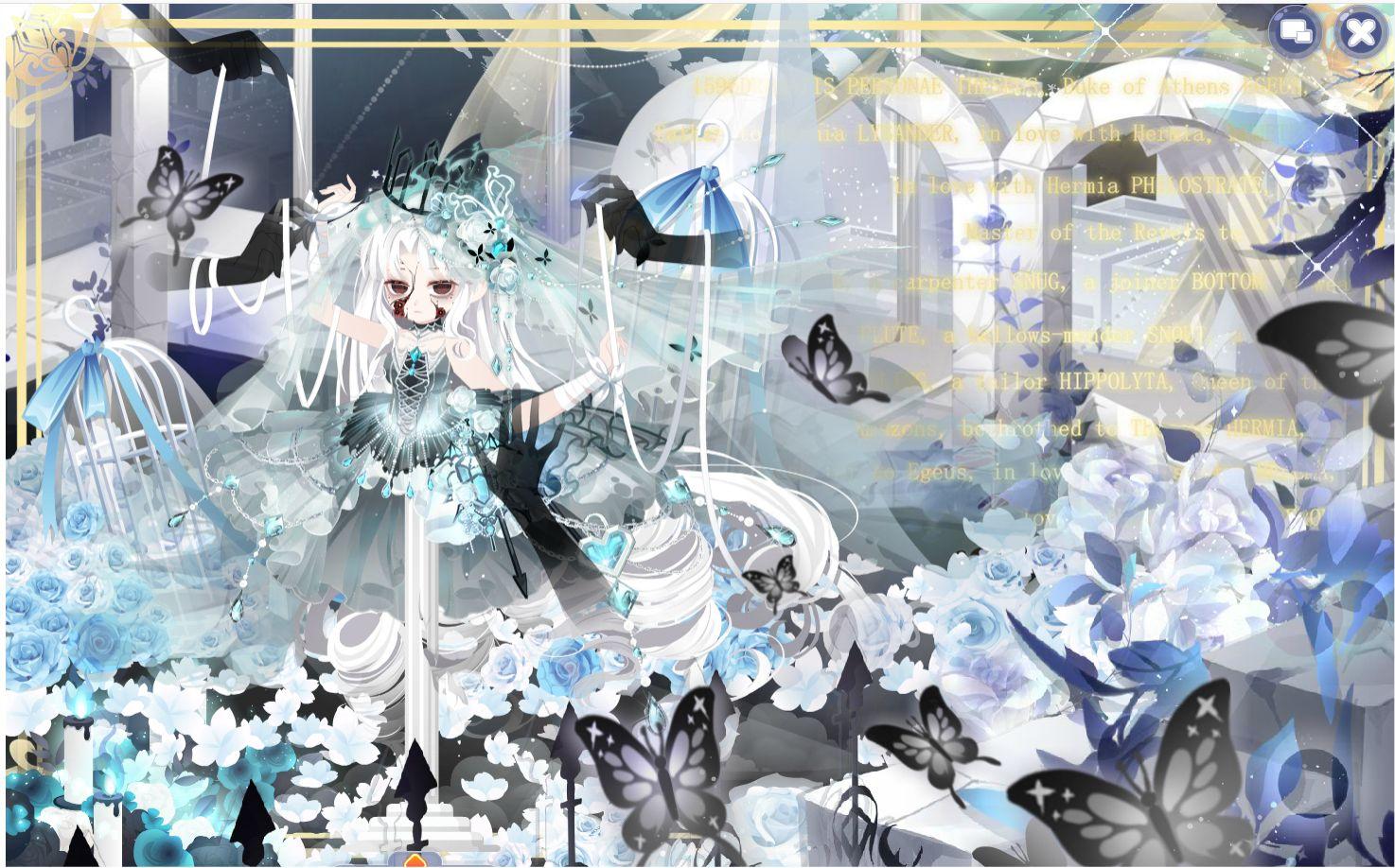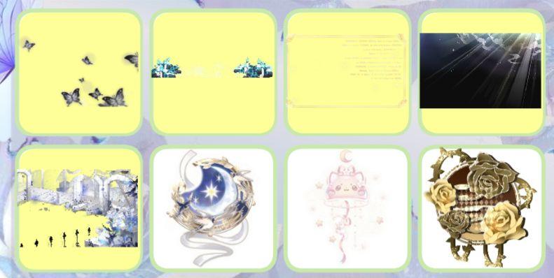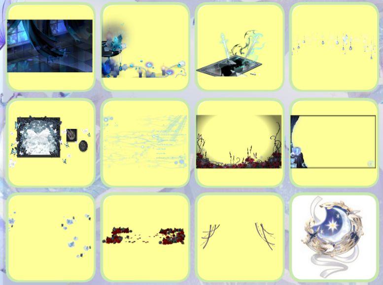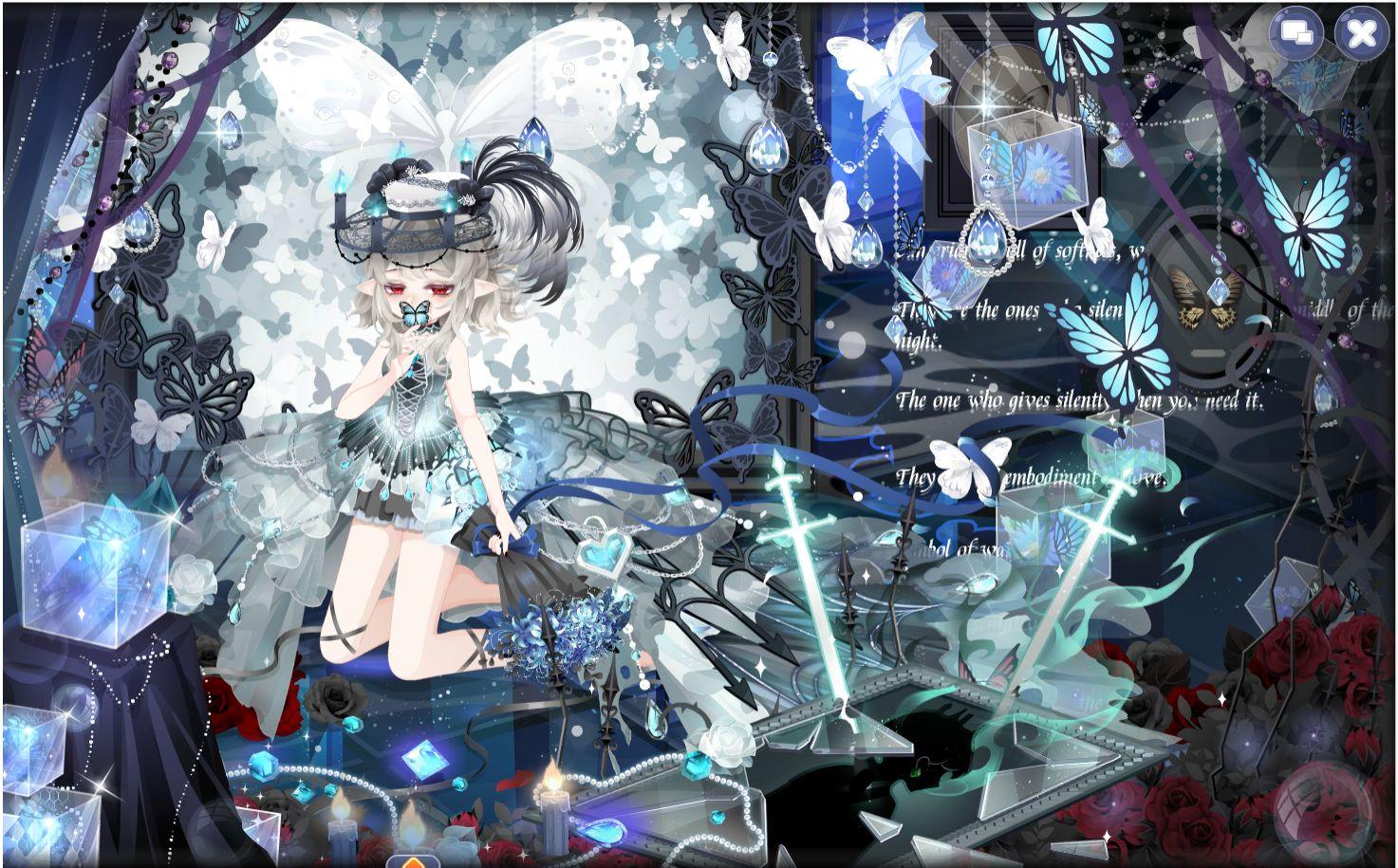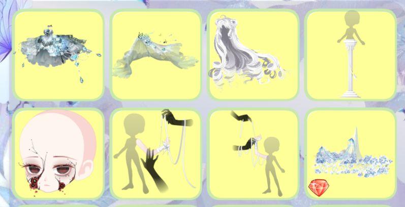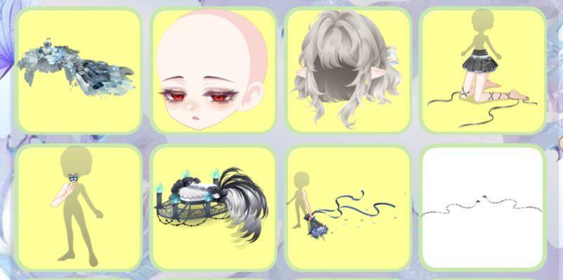 搭配部见:银蝶暗语瑰丽,新篇闭眼表情,花·拨云见日,破碎流梦坚韧,蝶舞燃夜亲蝶,公爵夫人帽子,夜灵新娘花束,银蝶暗语幽暗,银蝶暗语华丽,银蝶暗语破碎,雨黯蛛纱梦幻,蝶舞燃夜画廊,巨蟹座秘密星言,莺泣瑰夜花藤,蝶影星沉帷幕,蝶影幻视粒子,瑰焰女王玫瑰,幽蝶女王吊链