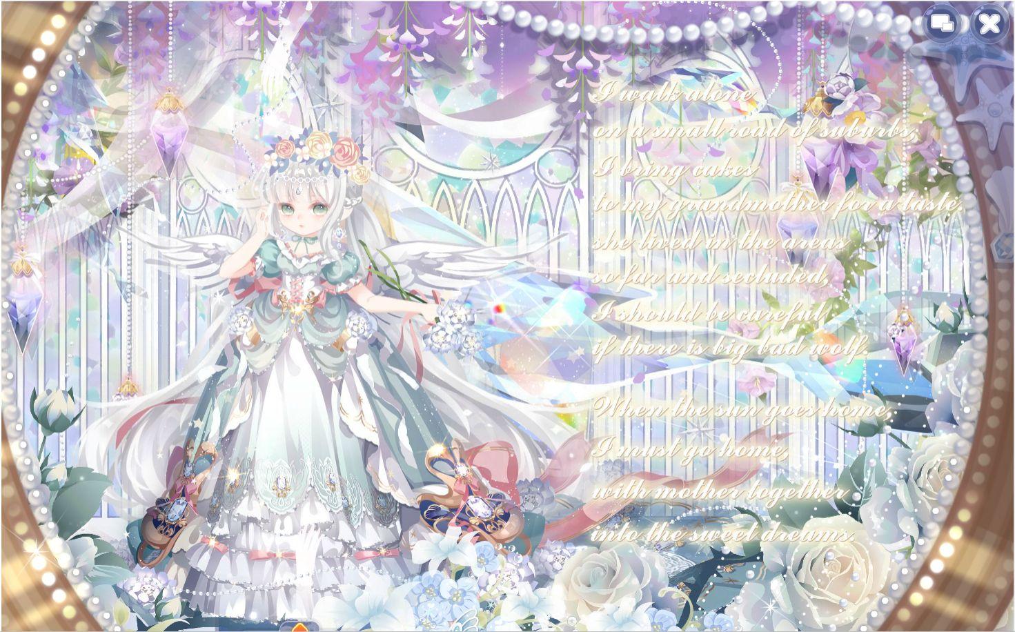 搭配部见:楚挽瑶意纱裙,曲院姐姐头饰,奥莉安娜哀伤颜,祈愿仙子发型簪,祈愿仙子发型,霜花少女琵琶,楚挽瑶意境界,诗意黛玉桃花,诗意黛玉茶花,耀舞盛世花灯,月·烟亭鹿灯,幽兰入室内景,异世桃源岛