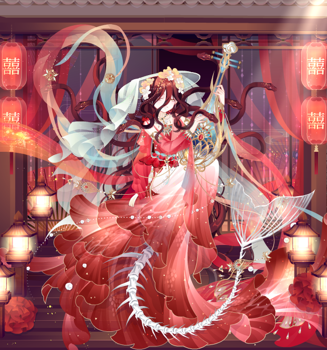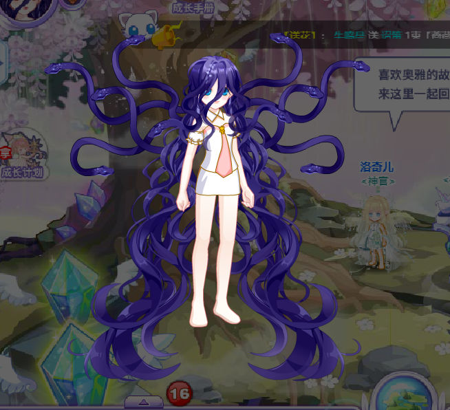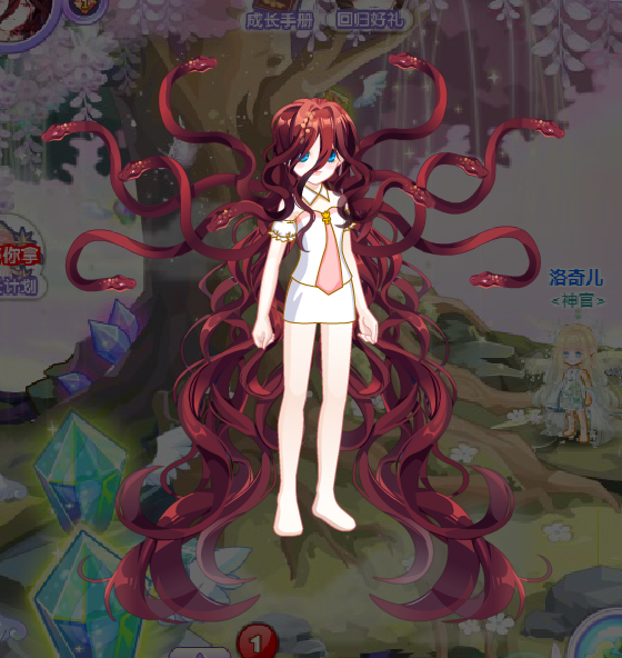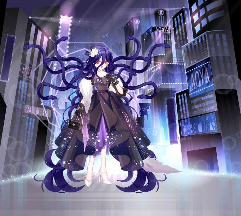 是年费专属的幻动部件,蛇发会不停动来动去,其余部分不会动,不适宜搭配风向,这个紫色鲜艳了不少,饱和度up,总体没什么大错吧(作为年费部件有点一般,泛用性低