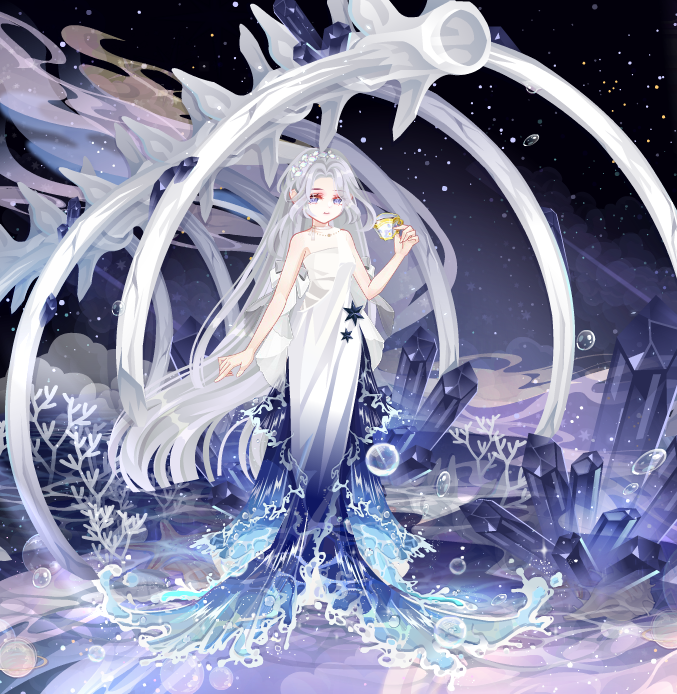 这是个腰部饰品,把裙裾部分单独拆了出来,但是很难搭,可恶,衣柜小没找出来很有意思的搭配,我选择中规中矩一点的搭配,海浪元素比较突出,搭配一些有水纹的饰品比较好