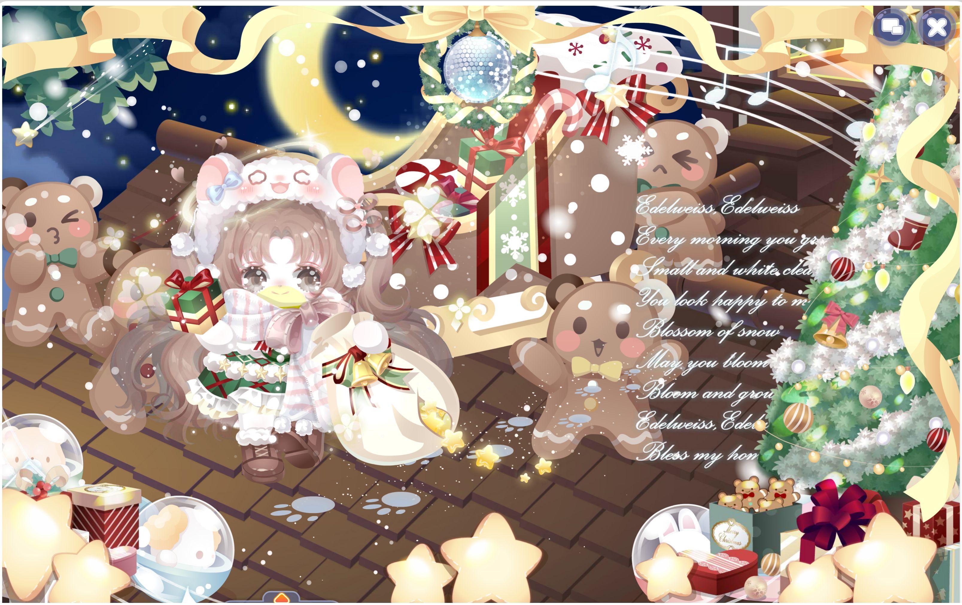 搭配部件:姜香雪夜连衣裙、姜香雪夜礼物袋、姜香雪夜站姿、姜香雪夜礼物、键帽精灵发型、雪貂宝宝帽子、雪貂宝宝围巾、悠悠赏花灿烂颜、霜雪玩偶披风、姜香雪夜飞车、雪国列车童谣、快乐出行背景、雪夜际遇雪纷纷、围炉喝茶雪花、奶糖甜甜礼物盒、甜甜酣梦屋顶、白羊.幸运、星落祈愿、时光精灵脚印、霜雪玩偶边框、霜雪玩偶圣诞树