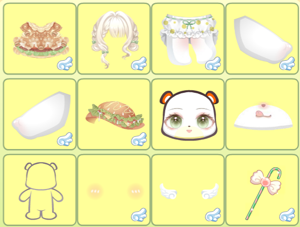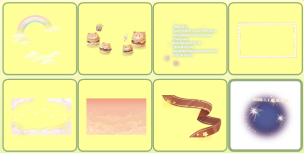 缤纷采购小提篮、秋日曲奇围巾、临停航班裙子、鱼鱼白色皮肤、小熊的西高地、酷酷小熊马甲衣、上学日记站姿、苹果女孩表情、苹果女孩卷发、幸福定格帽子、草莓果酱害羞羞、毛织男友耳机、夏·煜煜生光、夏·年少友人、霜雪玩偶地毯、霜雪玩偶背景、花房姑娘桌椅、手账小画家架子、金牛熊熊货物架、金牛熊熊收银台、萌宠咖啡厅角落