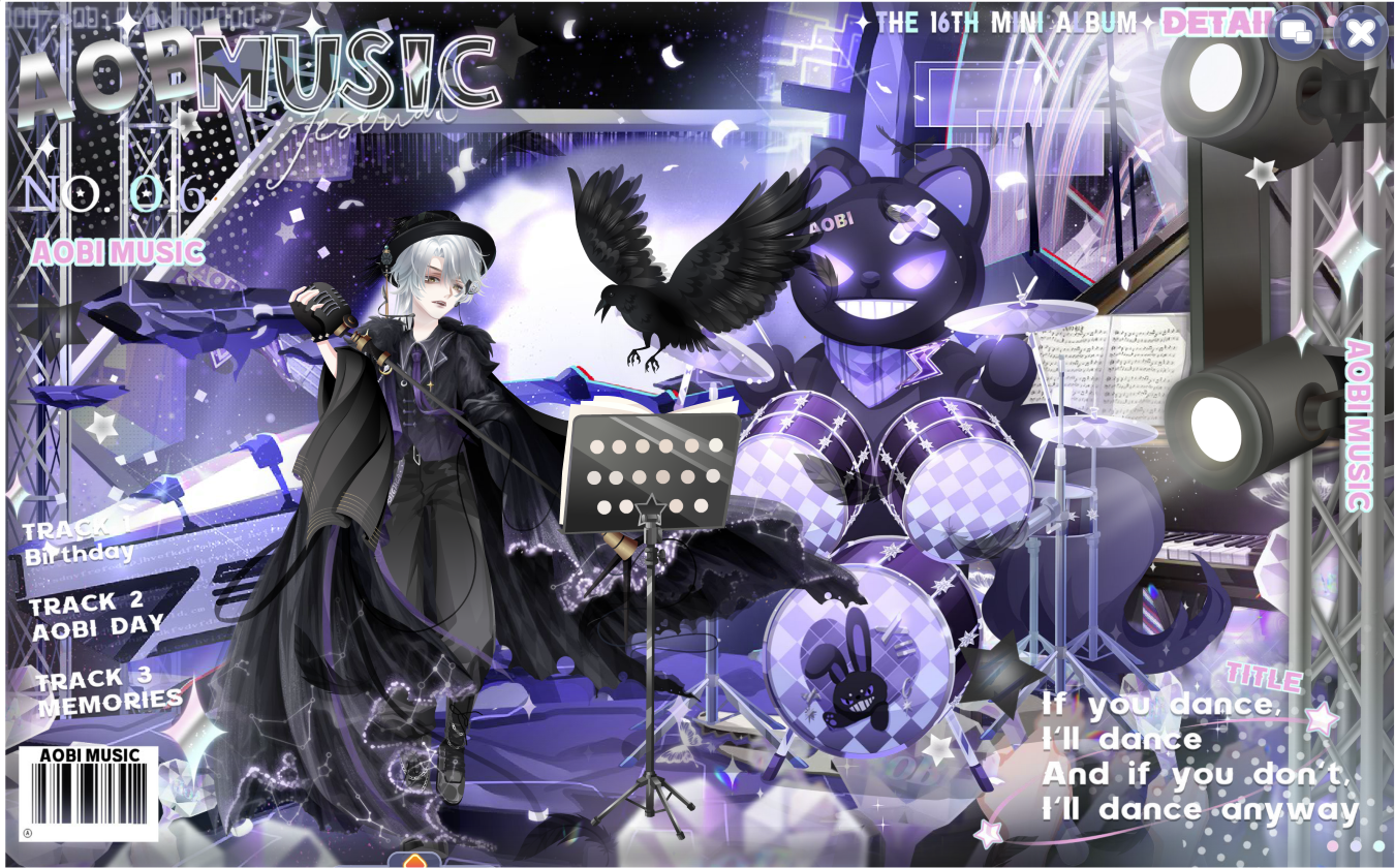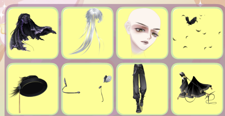 搭配部件:幻夜星轨、乌鸷弥城银长发、乌鸷弥城控诉、乌鸷弥城信鸦、乌鸷弥城礼帽、鸦·明日聆听、鸦·旧日路过、摇滚少年麦克风