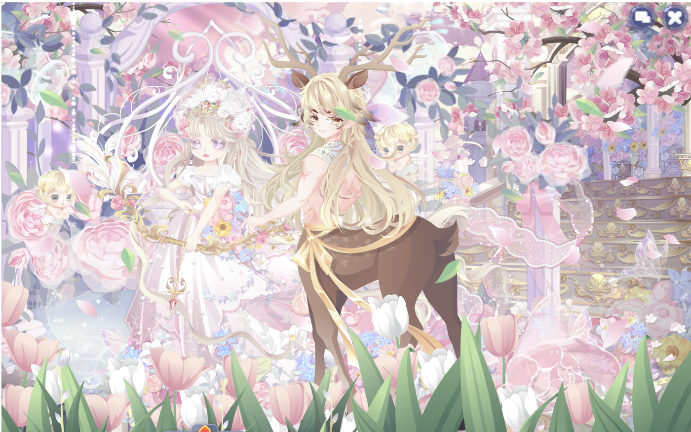 搭配部件:花·影、花·语、花之昔洛弓箭、花之昔洛头纱、感恩女神发型、幻·梦境使者花环