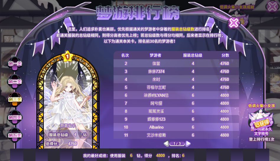 近期的想法,想弄完全关卡的上榜作业,有需要的姐妹可自取,适配大衣柜玩家。正文完后