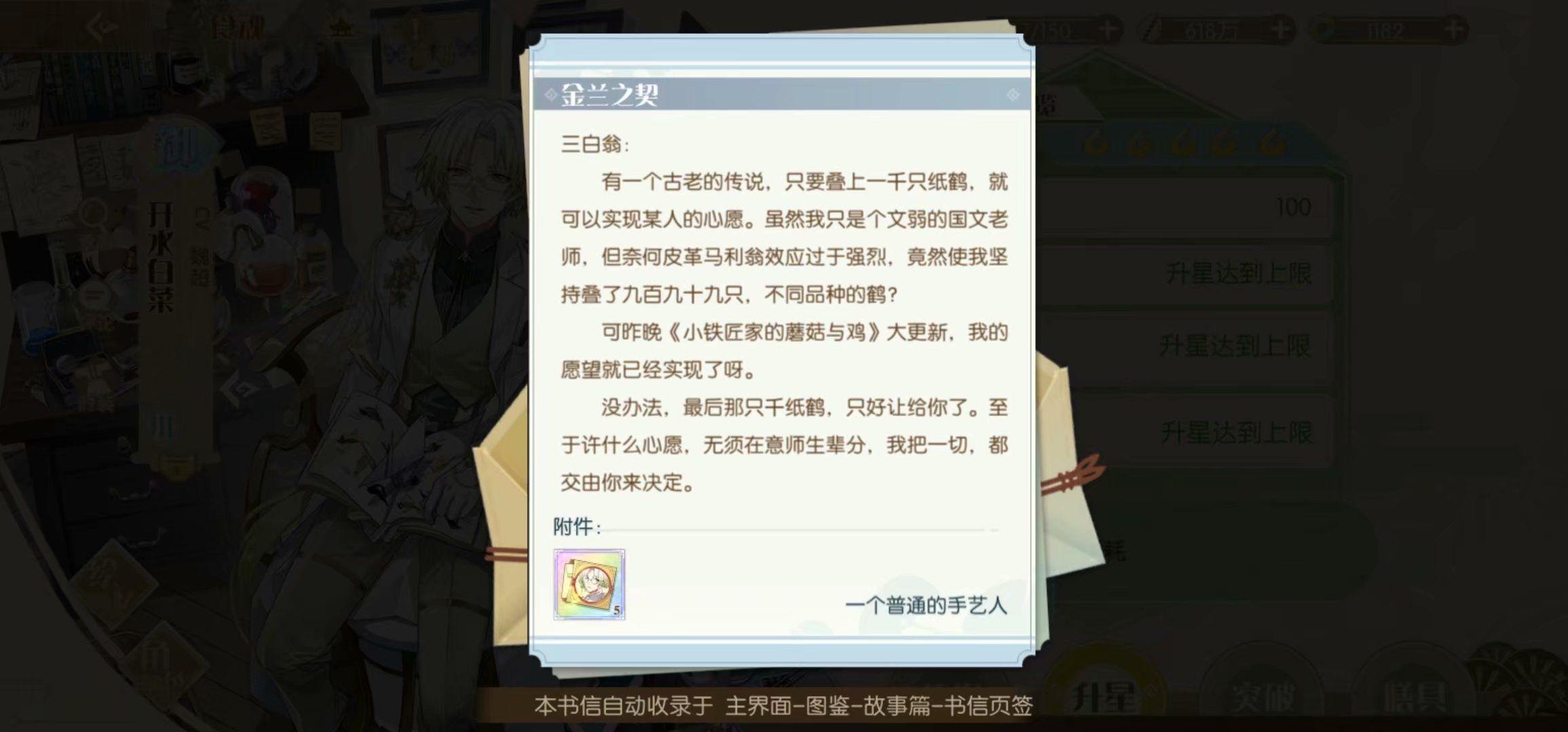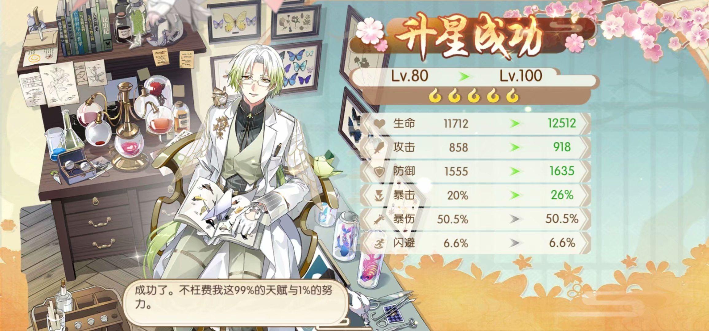 明天月卡到期,不续了。再乞讨十天就有俞生了,现在有三个调料,等特训完了还有一个,礼物囤的够多了,到手之后应该能满级满好感四花。