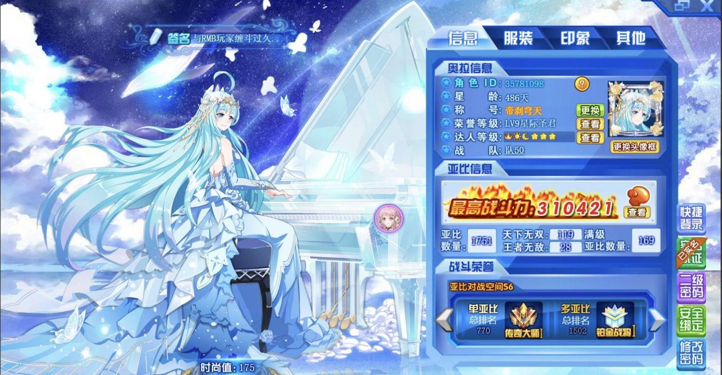 其实我有三个帐号。最古的那个小学时创的,没十年应该也有九年了,有一阵子玩龙斗士去了,就没再玩奥拉,渐渐就忘了那个帐号。