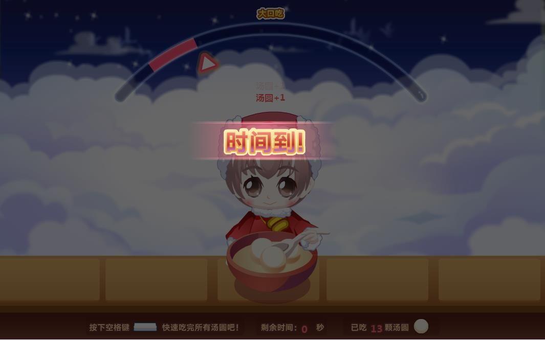3.就是一直按空格的啦,不要停,不要停,一直按下去,一局差不多5-6个,平均2-3秒一个元宵。