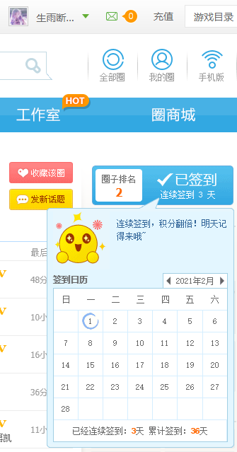 今天是二月一日,是我在奥拉星圈签到的第二天,新的咕咕咕一天