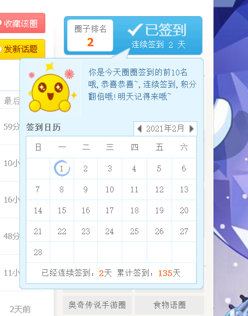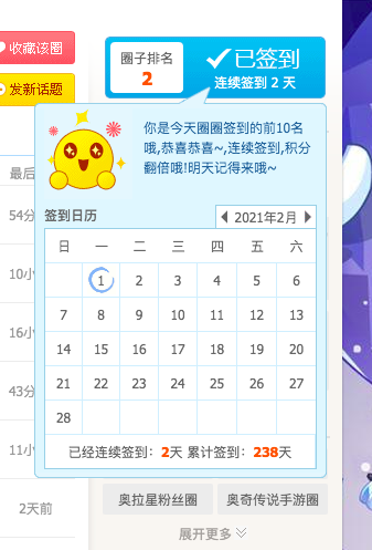 今天是2月1日,是我在奥拉星圈签到的第二天!