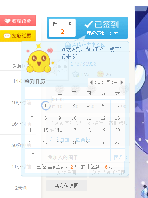 今天是2月1日,是我在奥拉星圈签到的第二天!,一起加油哦