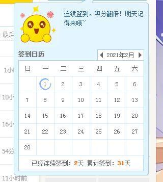 今天是2月1号,签到第二天~