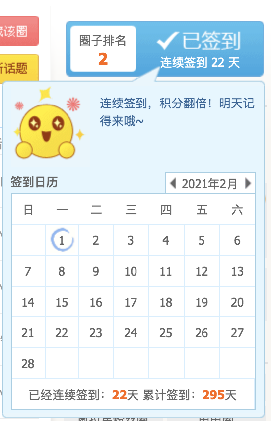 2月1日,签到第二天