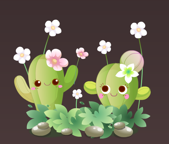 一个动态的仙人掌小装饰,萌萌的仙人掌和简约的小白花