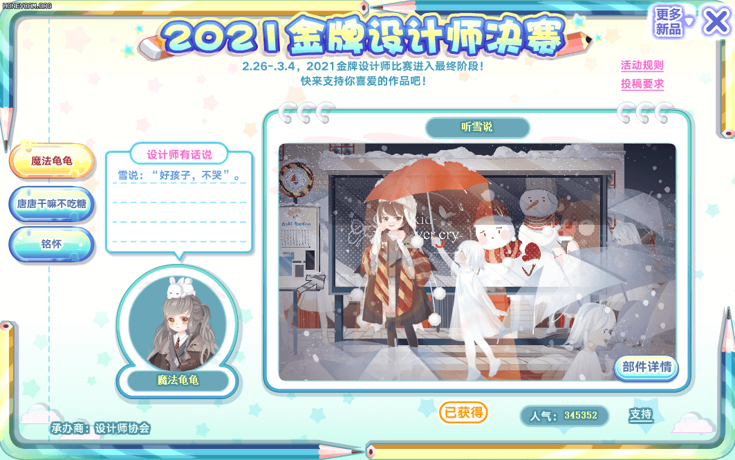 注意色系和头顶雨伞的雪,这样搭配起来应该没什么问题。