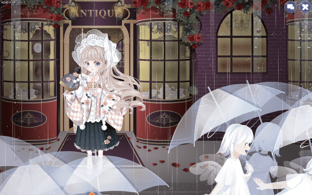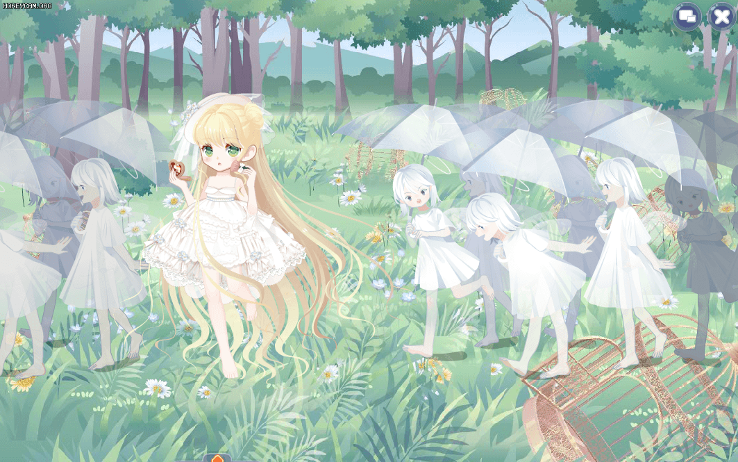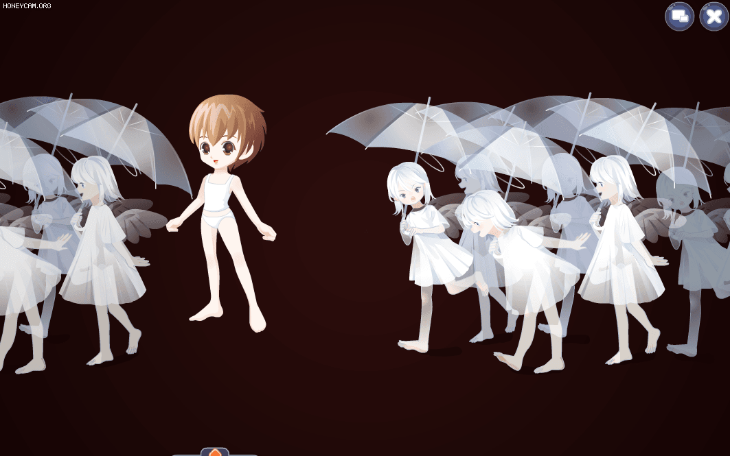 位于主人物身前的撑伞女孩子们,右侧的女孩慢慢向右侧移动。