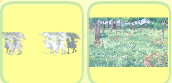 主人物的左右侧都有着不同形态的小女孩,撑着伞,她们笑着跳着往前走去。因为她们的颜色是白色,所以比较好搭配。