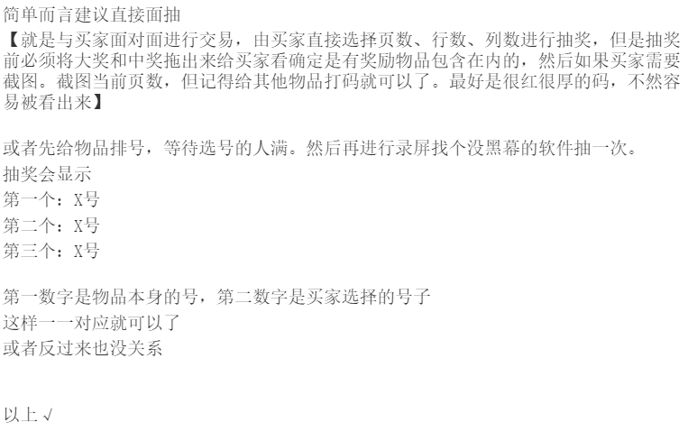 我只知道,好像是在衣柜里排好,编号,在圈圈(其他平台)说明其中的奖项(一部分,通常是最大奖和大奖)。然后。。。让付钱的人选号? 好像就是这样吧!