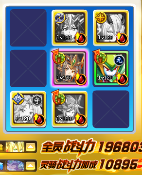 1右,无灵骑,猪瑞金钻配置,能打掉爱灵即可,5点