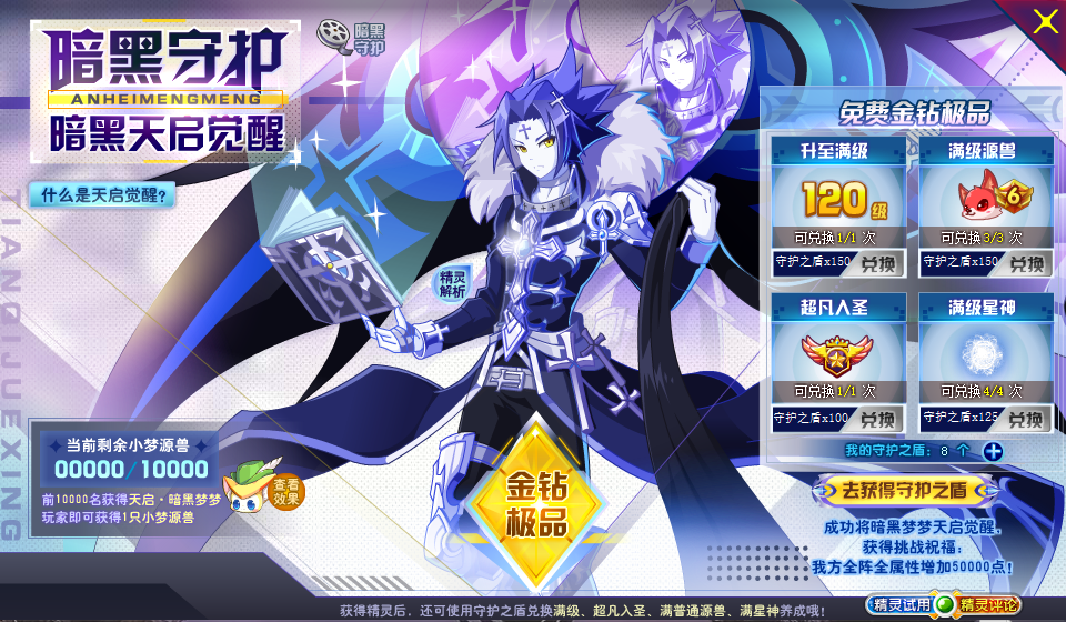 可获得精灵:启世神女·希、救世圣钥·启、天启·圣目神君