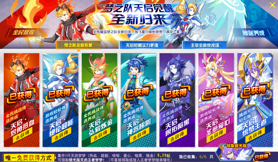 活动:集齐6只天启梦梦可领取银光版天启王者梦梦