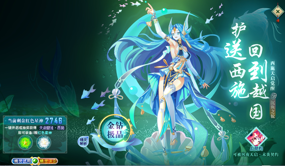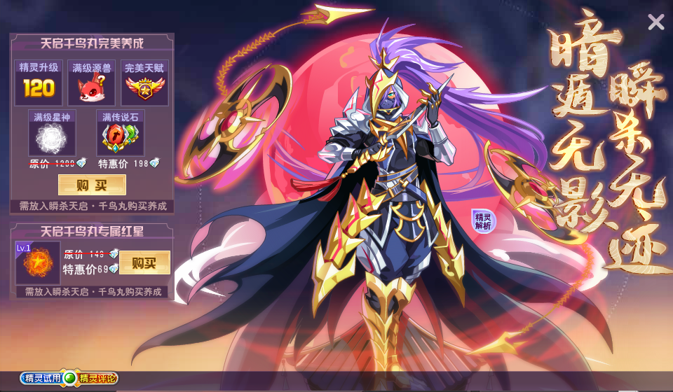 可获得精灵:天启武圣·熊猫、瞬杀天启·千鸟丸、天启碧涟·西施