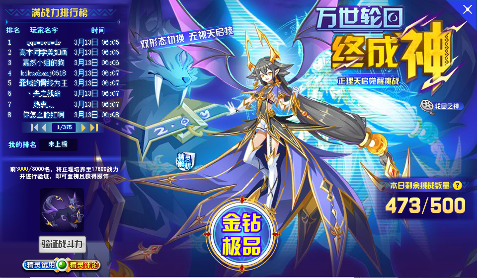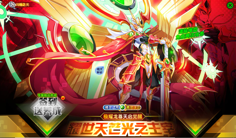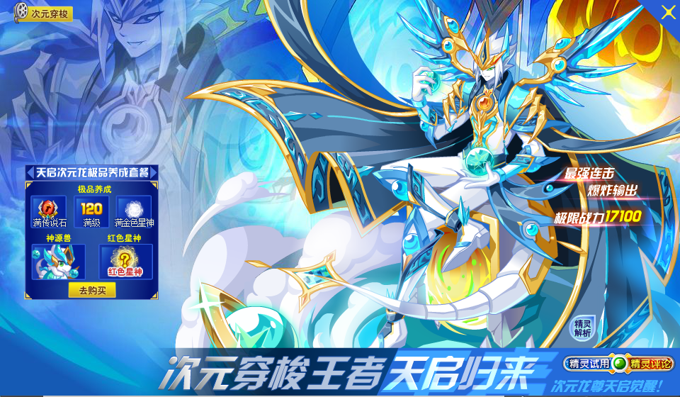 可获得精灵:夙夜天启·末炎(有她好多破阵都要女皮)、天启极耀·龙尊、轮回之神·正理(男妹妹...希望之神·夏因神使,专克天启传说技)