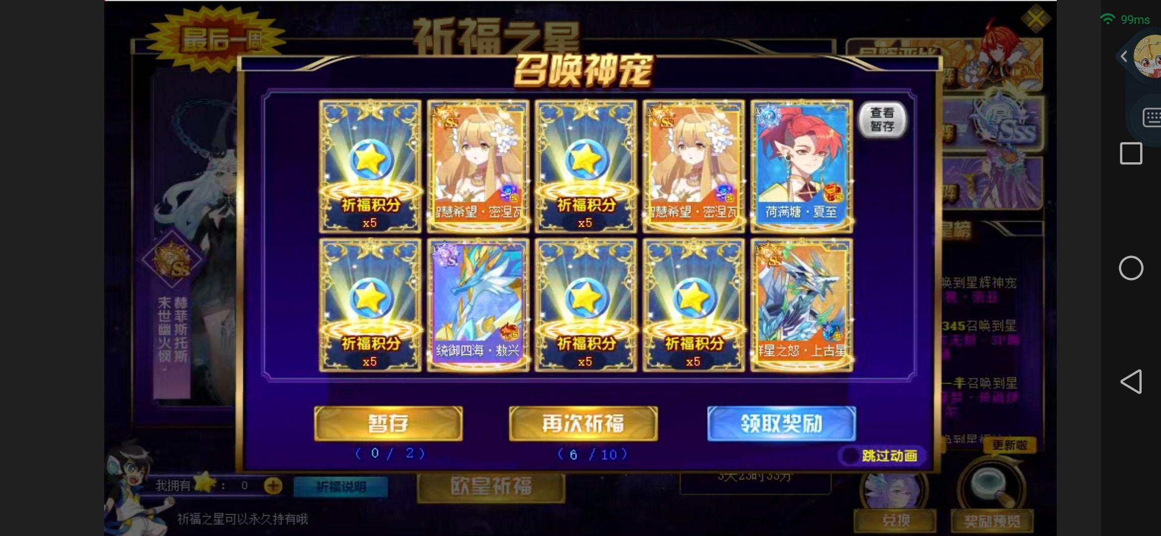 大号中了一个上弟,啥用没有,小号中了王者女娲和梦,但是我小号早不玩了,根本练不起来