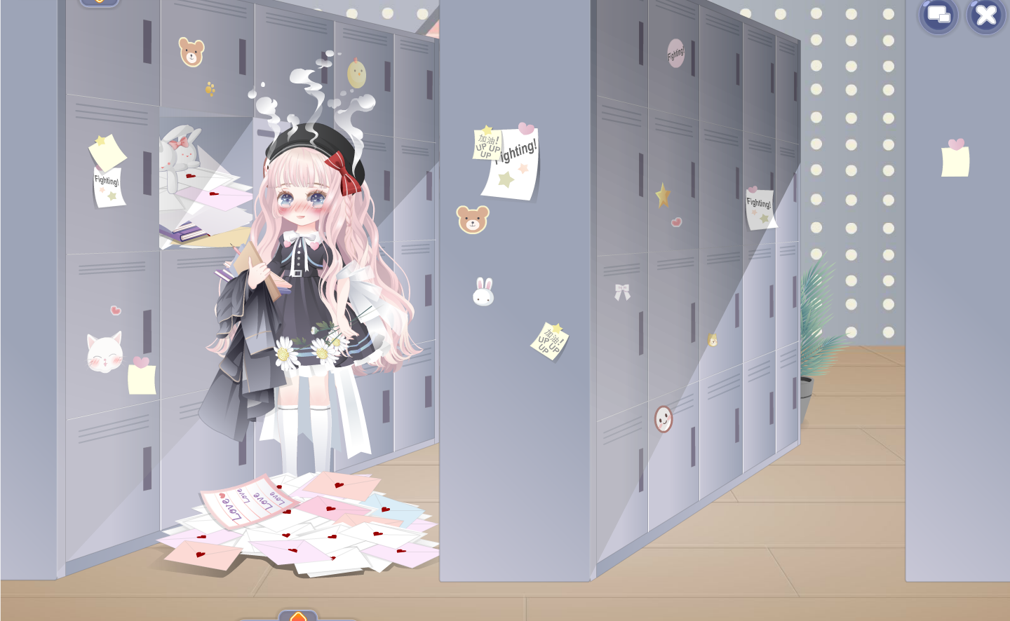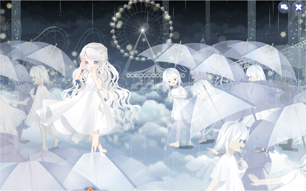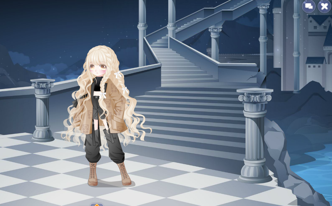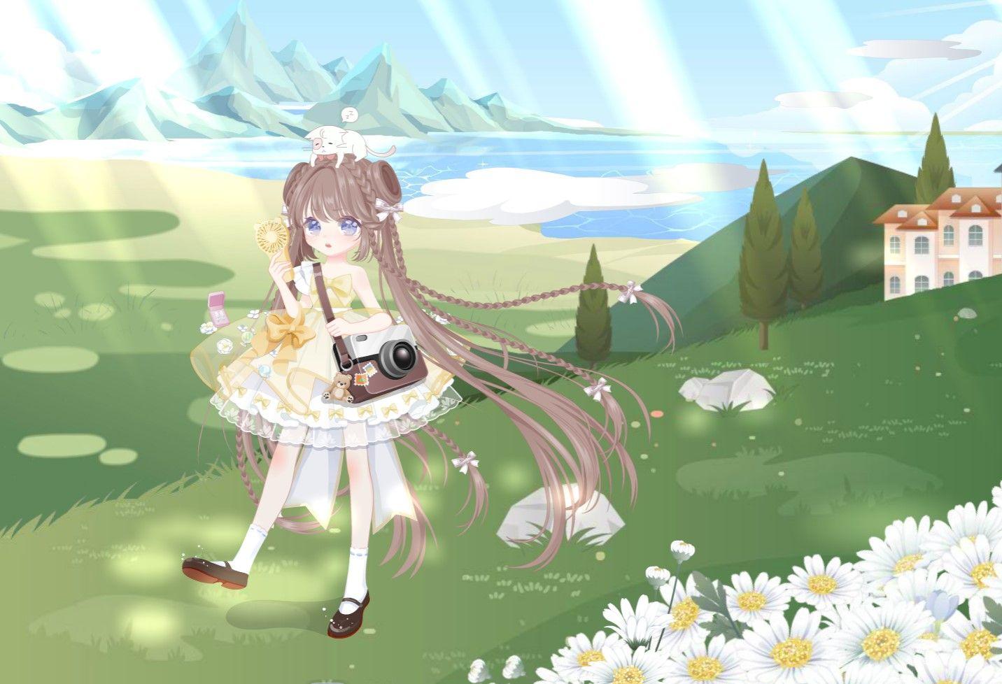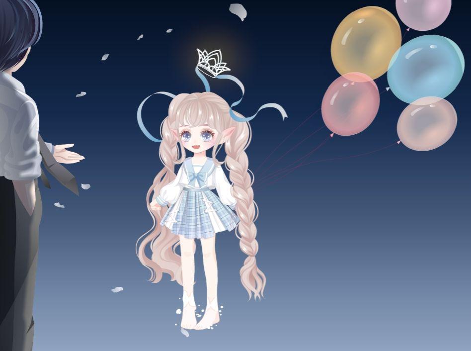 头发:凌乱萌马尾/耳朵:捣乱恶魔尖耳/表情:自由旅行者表情(加开心笑)