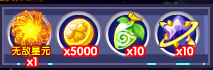资源:4个小星元(每天)。大奖为1个无敌星元、5000金币、10个潜能果、10个天星果(一次性)