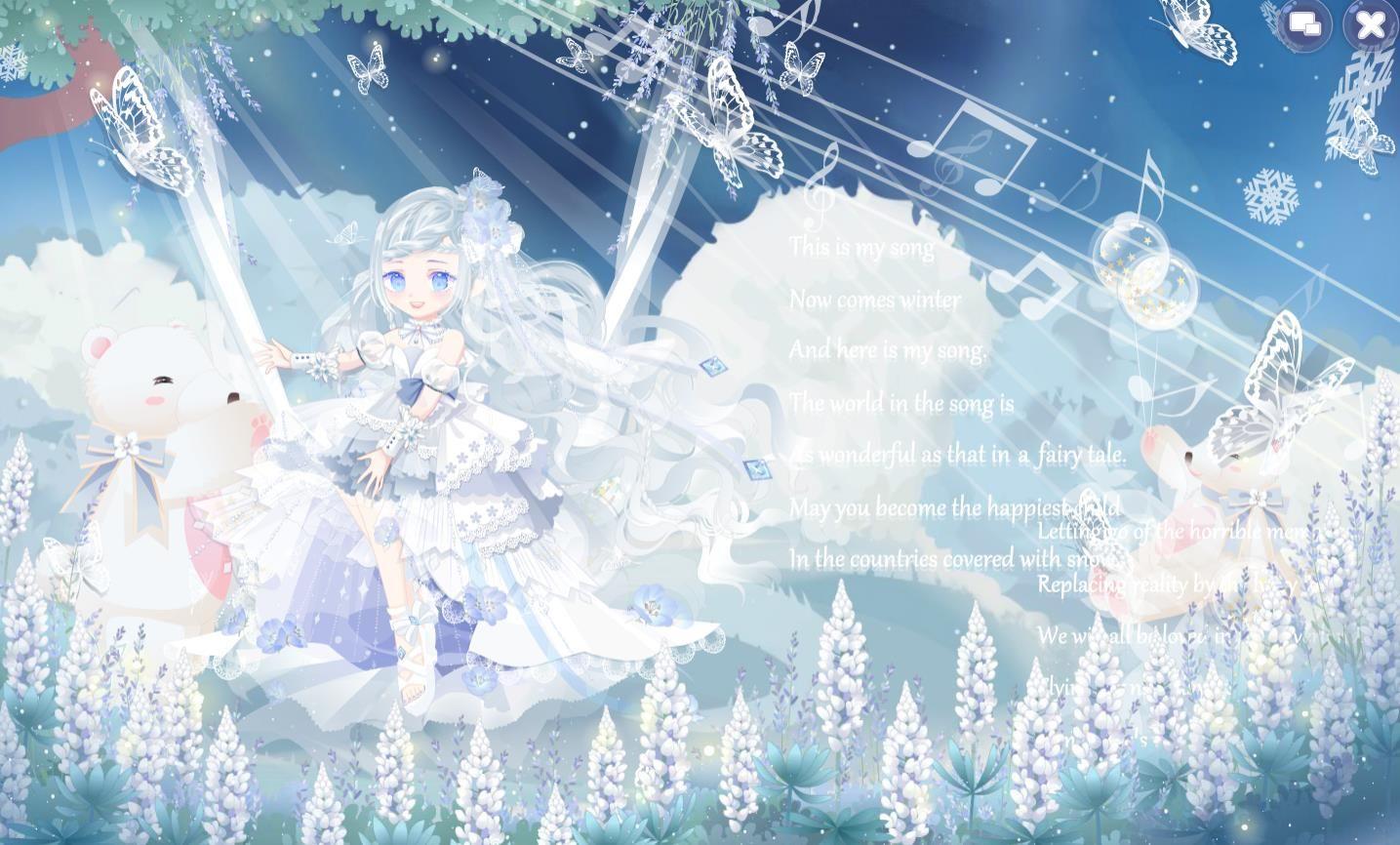 搭配部件:青海之行刺绣鞋,青海之行白纱裙,青海之行白衬衣,HX清辉长卷发,再续前缘耳饰,XY微醺红茶唇,禁地守护圣女手,永存之爱纱帽,贵族小姐含羞扇,白女巫闭眼妆,木屋新娘鲁冰花,竹黛寻野狐羔,水精灵王子,独角兽全屏背景,梦 妮娜圣诞雪花