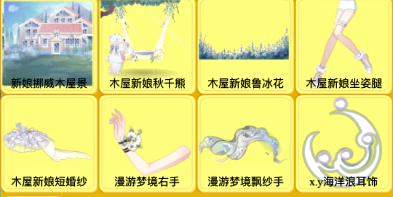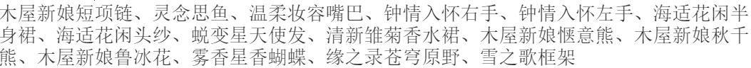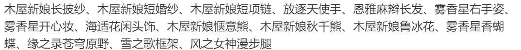 木屋新娘坐姿腿,木屋新娘短婚纱,木屋新娘短项链,木屋新娘短头纱,咖啡萌宠长发,噩梦终端惊讶嘴,今 寻爱千金裙摆,恩冰脸红红蒸汽,梦幻泡泡吹泡泡,寒江孤雪吹雪妆,粉色小花耳环,木屋新娘秋千熊,古 千年守候花瓣,花梦蝶静寂之森,浪漫满屋照片墙,浪漫满屋珠帘饰,恋 紫罗兰之海