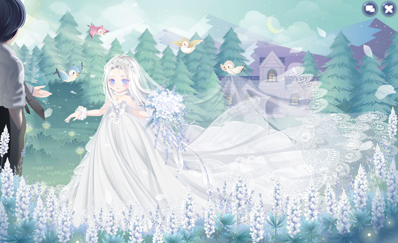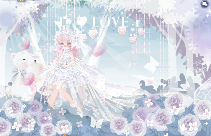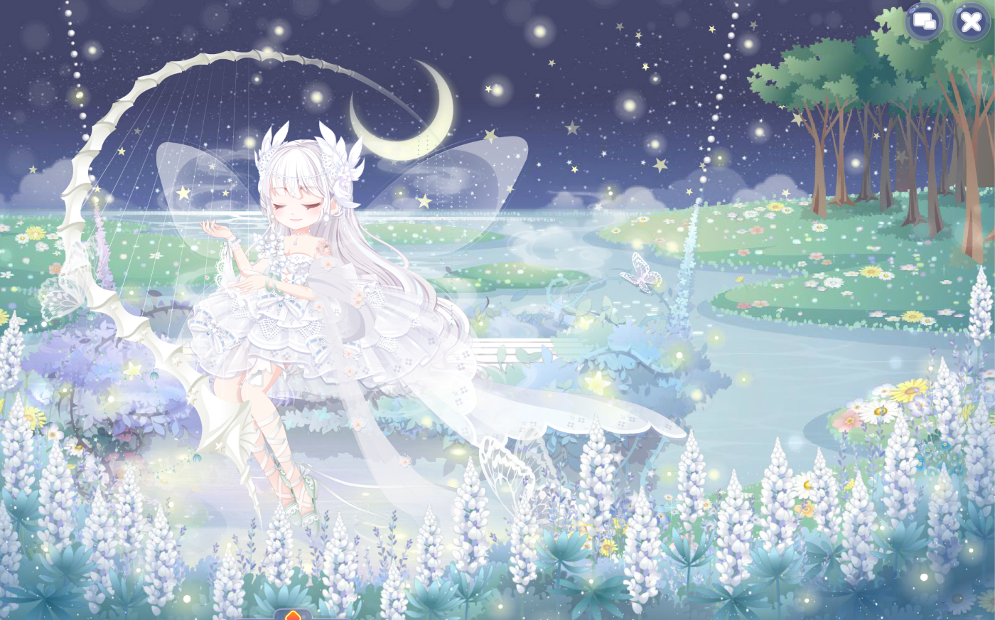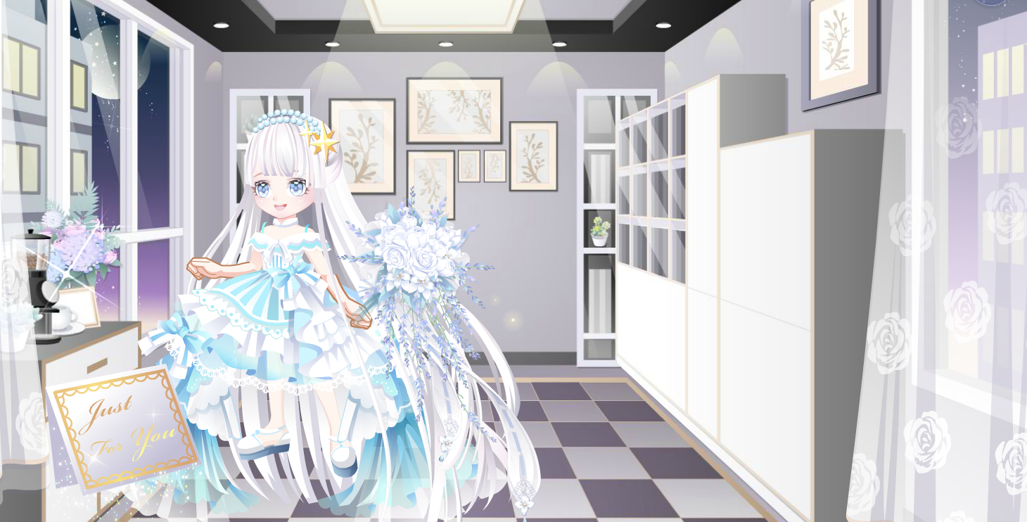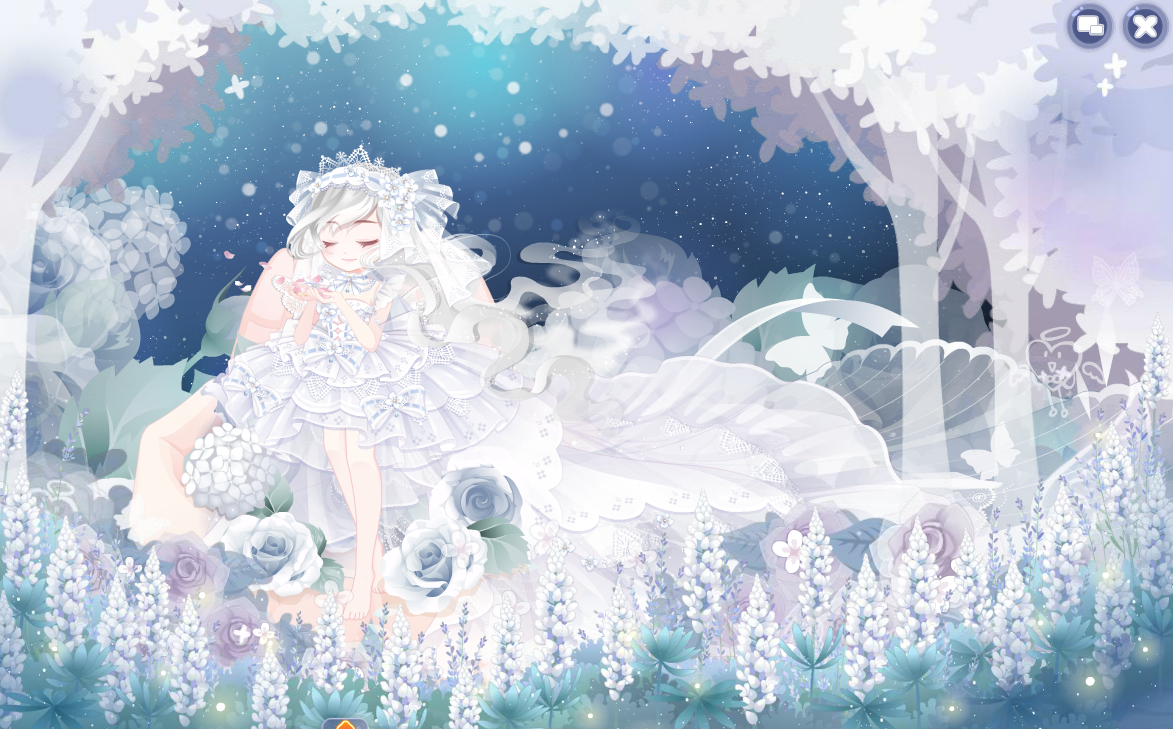 搭配部件:木屋新娘捧花,木屋新娘俏皮装,森林清新白色鞋子,鬼神阎魔魅长发,星空魔法少女头饰,清新约会清蓝裙,恋.精灵心意卡,璀璨总裁办公室