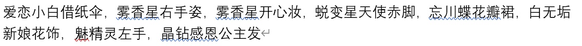 潘多拉之爱病容、命运牵绊蝴蝶纱、月球魔法师fumo(只能用拼音)、月球魔法师娃娃、