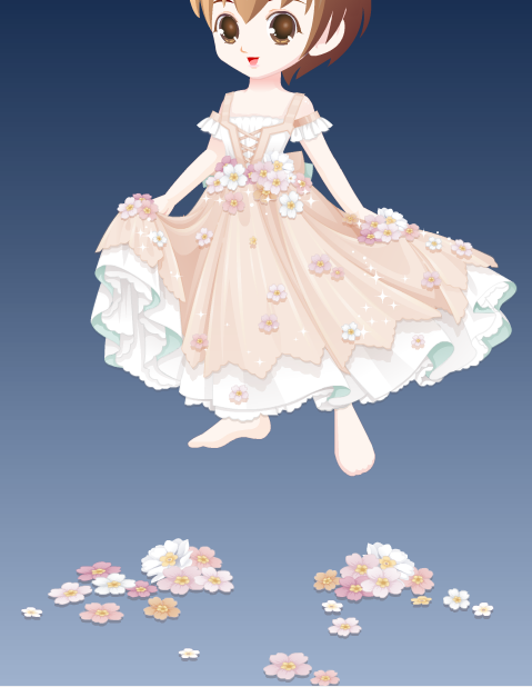 这个小裙砸走的是可爱俏皮风,自带一个轻扬裙摆的小动作,非常有小女孩天真活泼的那种感觉!并且我很心水的就是裙摆下方的地上还有那些粉色小花瓣,就莫名戳我!那些花瓣感觉就很可,配上小裙子就更可了!