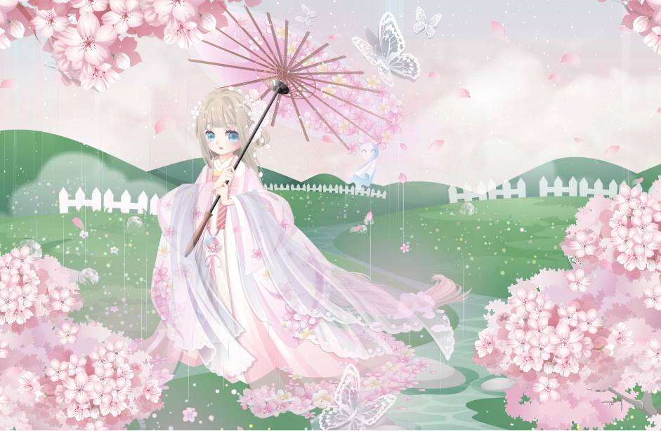 我超喜欢这个的!粉色的樱花不仅浪漫,而且少女感点满!空中飘落着樱花花瓣,显得画面更加唯美,晴女的花瓣景饰非常百搭,自带浪漫气氛,好看的我当场落泪哭出一条塞纳河!!