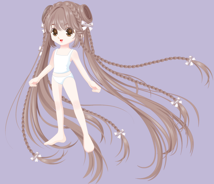 是一个很长的双马尾,偏棕色,我觉得这个颜色超级百搭,而且可以驾驭各种风格!头发飘扬的线条流畅,还有几股很细心的编发,发绳也是小巧精致的系成了小蝴蝶结的样式.我是很心水这种发型啦,俏皮风温柔风优雅风都能搭,而且那个线条感觉看上去就挺舒服的